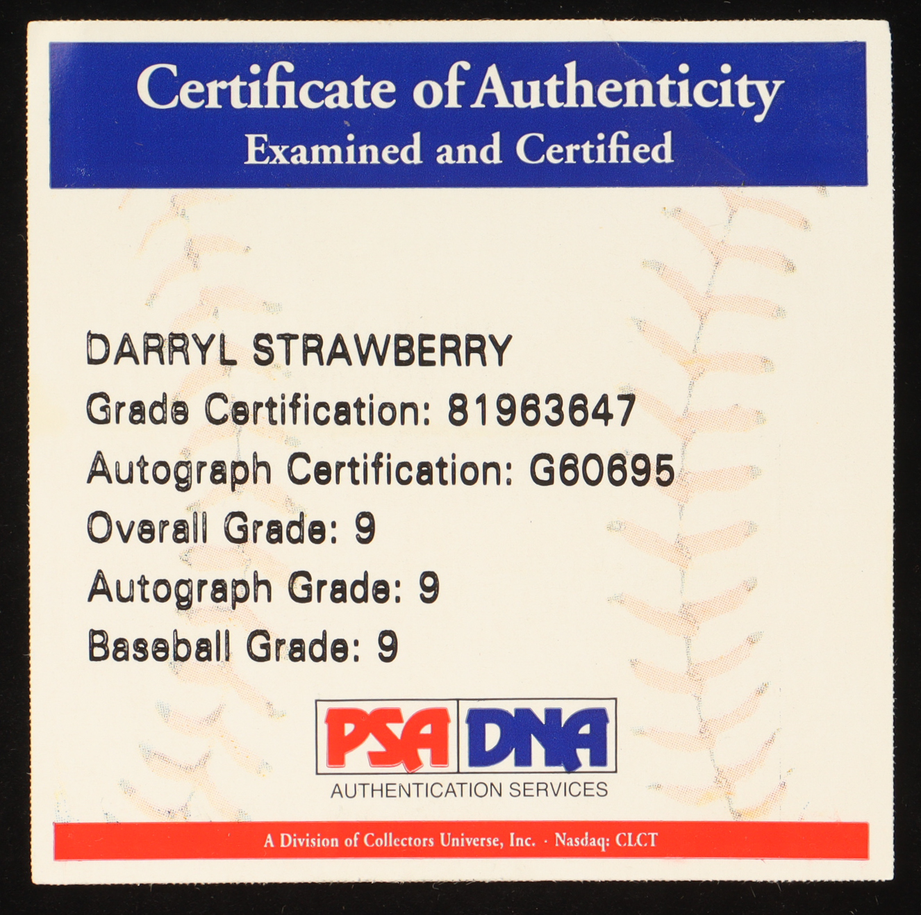 Rawlings Official Major League baseball. Hand-signed and inscribed by Darryl Strawberry (New York Mets).