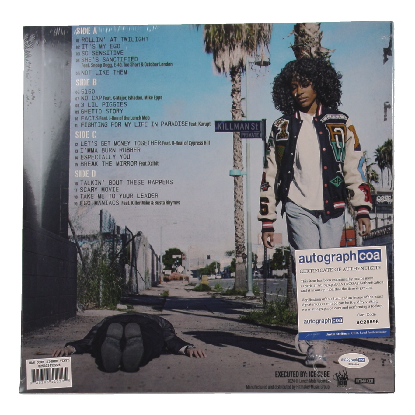 "Man Down" vinyl record album has been hand-signed by Ice Cube. Please note, vinyl record is included.