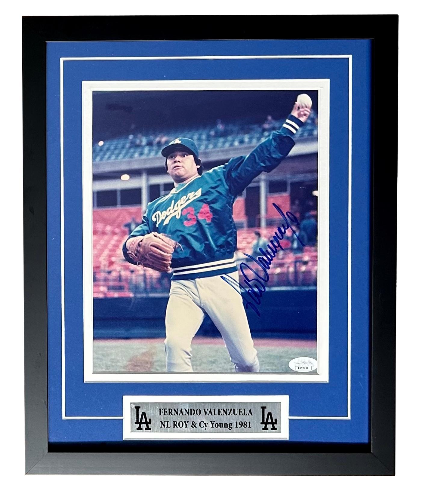 Custom frame measures approximately 11" x 14" in size and features an 8" x 10" photo that has been hand-signed by Fernando Valenzuela (D. 2024, Los Angeles Dodgers).
