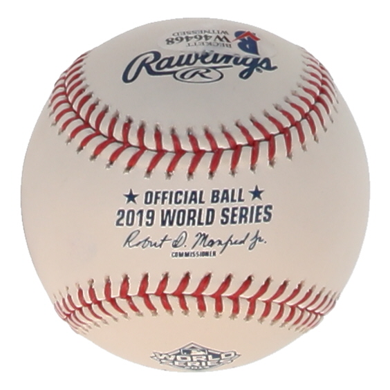Rawlings Official 2019 World Series Baseball. Hand-signed by Kurt Suzuki (Washington Nationals). Please note, there are minor stains throughout the baseball.