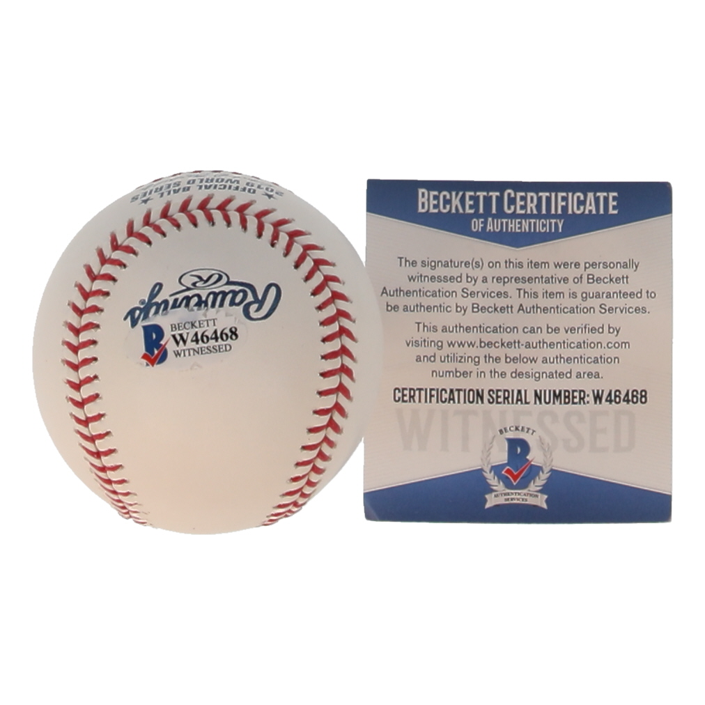 The autograph includes an official Beckett Authentication Services serially-numbered hologram and matching COA for authenticity purposes. The signing of this item was witnessed by Beckett.