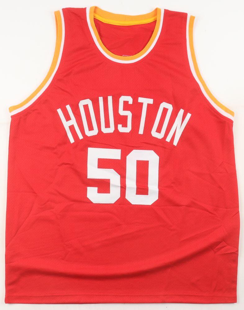 Custom jersey with everything sewn on, size XL. Hand-signed and inscribed by Ralph Sampson (HOF). Please note, the signature and inscription have bled.