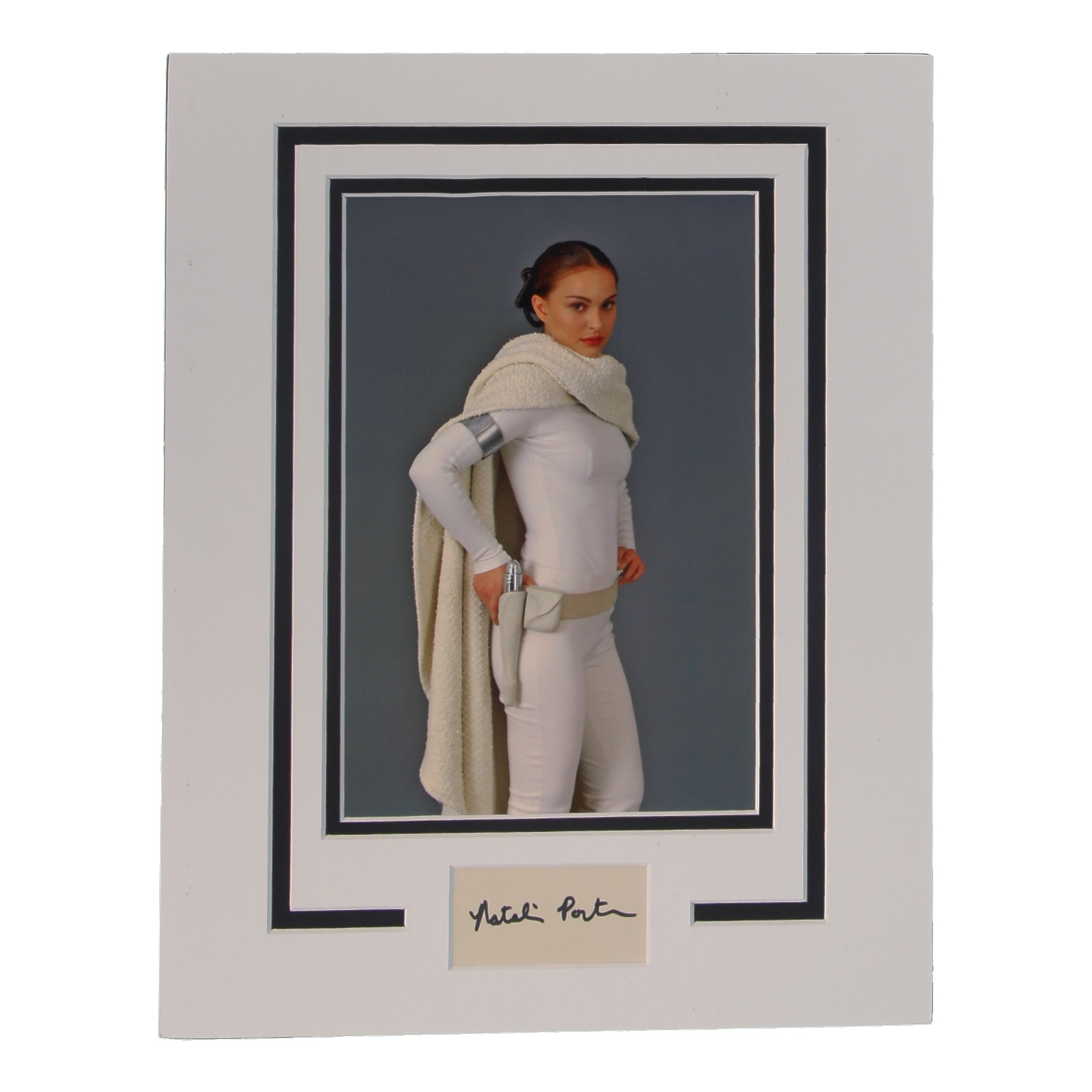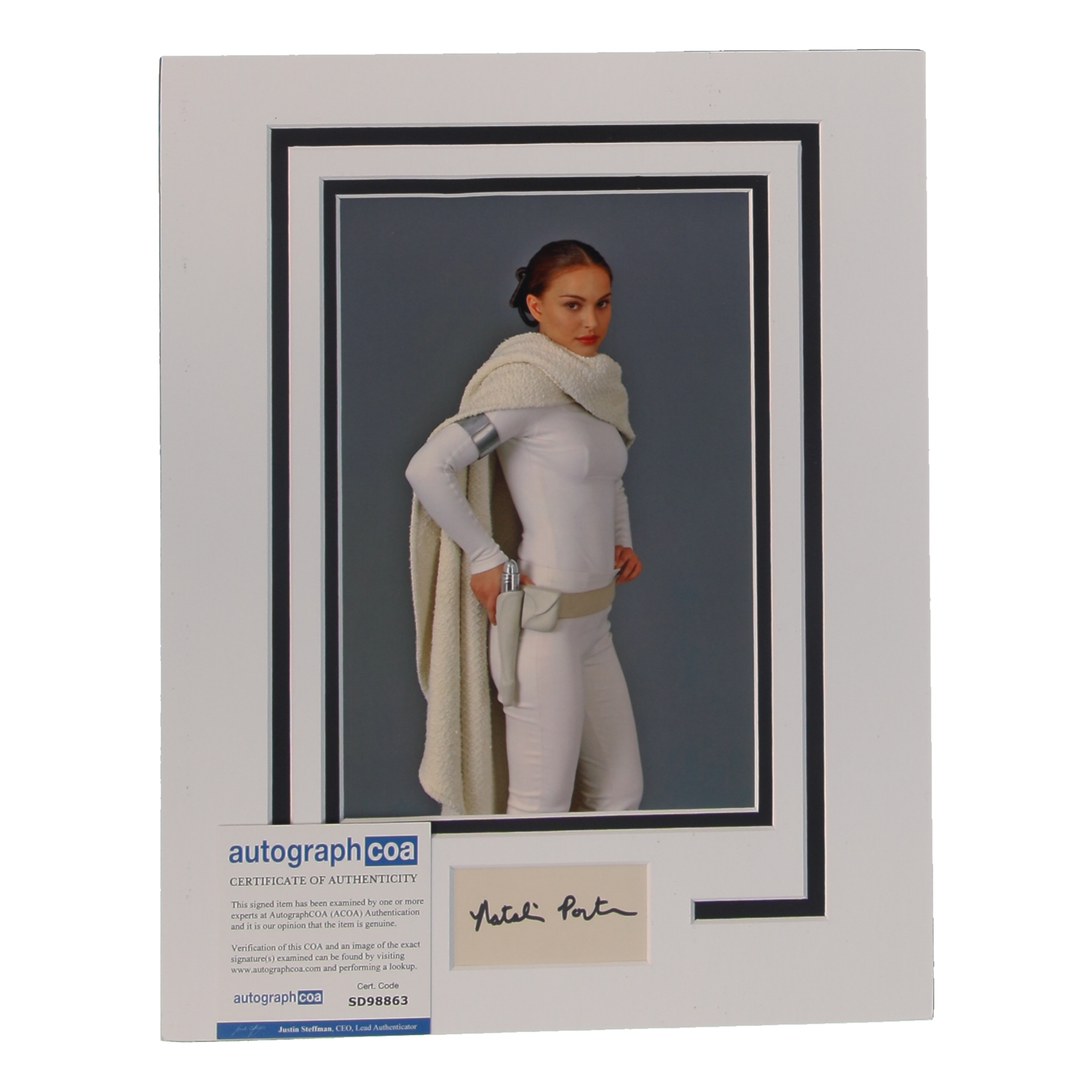 Custom photo display measures approximately 11" x 14" in size and features a cut that has been hand-signed by Natalie Portman (Padme Amidala).