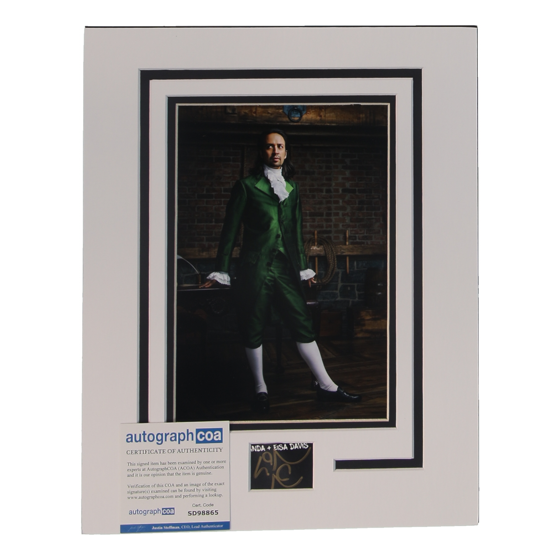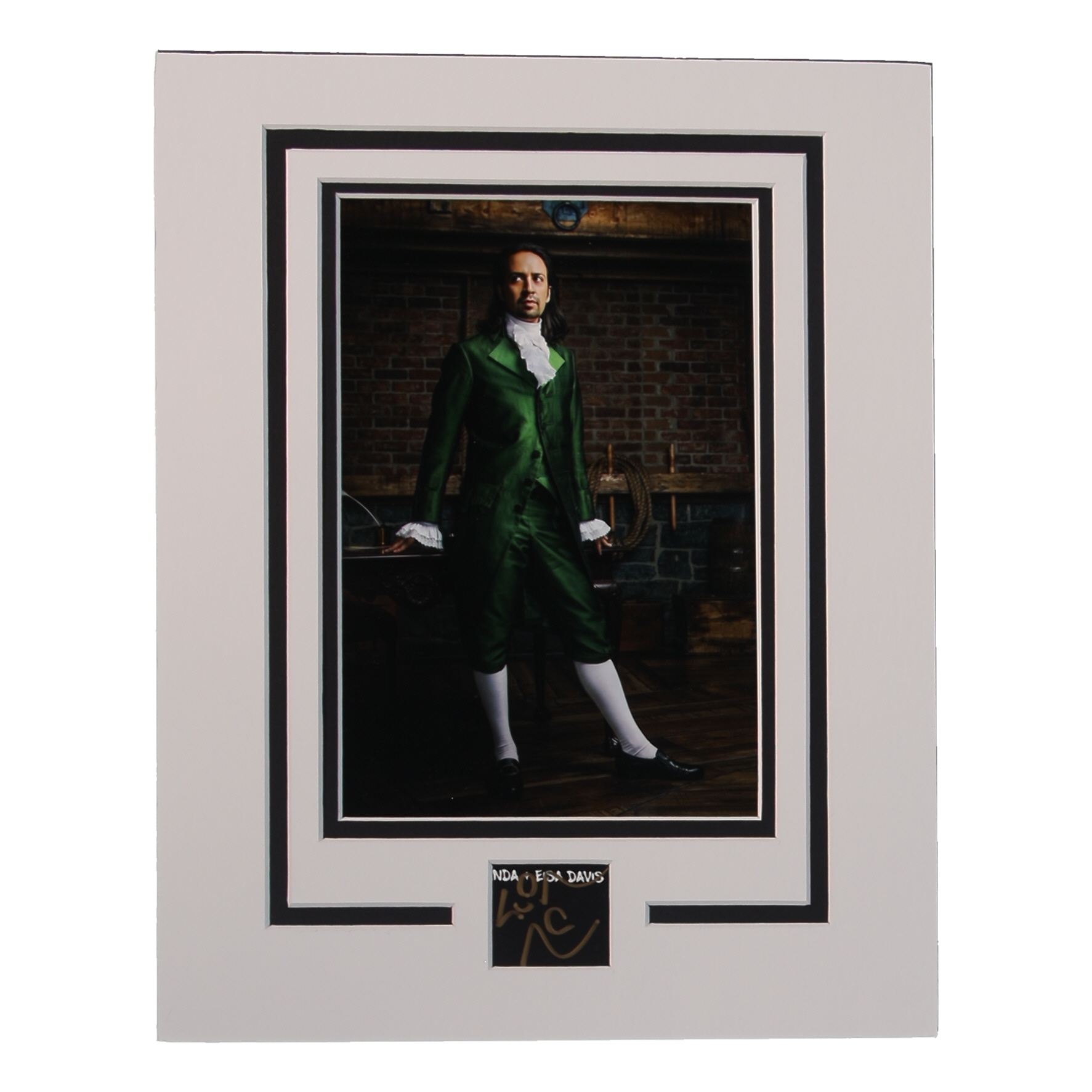 Custom photo display measures approximately 11" x 14" in size and features a cut that has been hand-signed by Lin-Manuel Miranda (Alexander Hamilton).