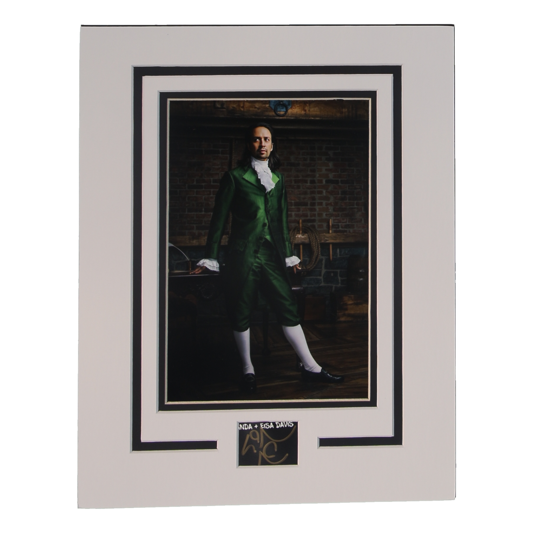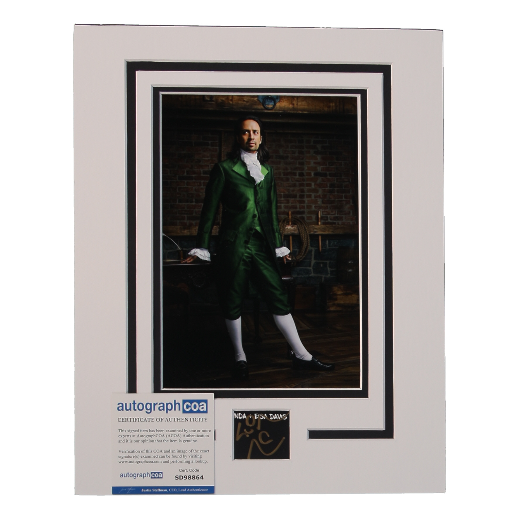 Custom photo display measures approximately 11" x 14" in size and features a cut that has been hand-signed by Lin-Manuel Miranda (Alexander Hamilton).