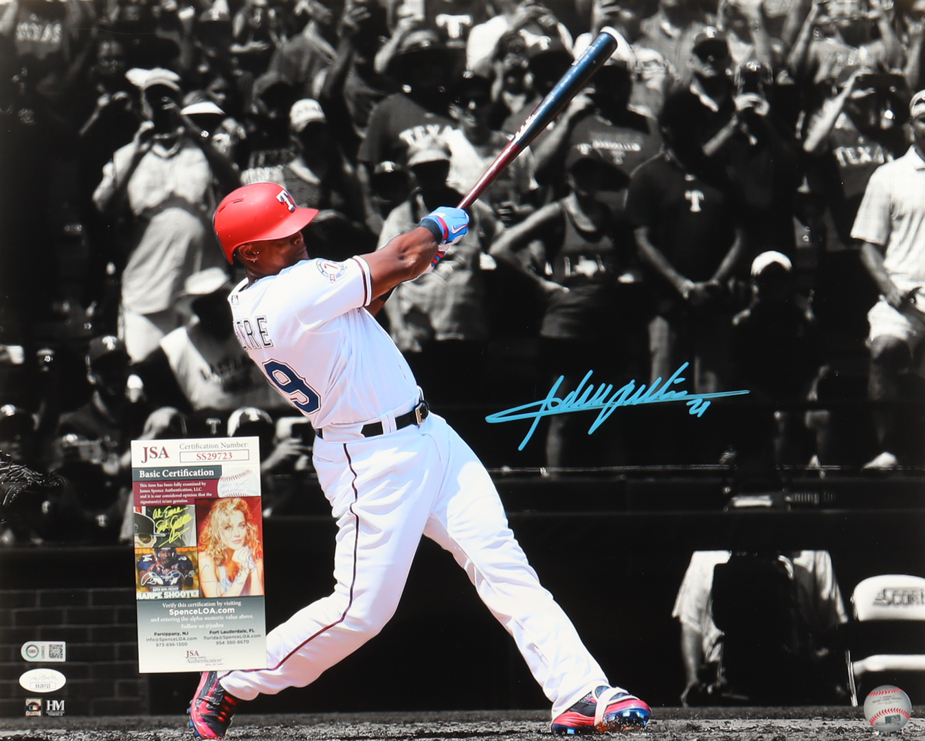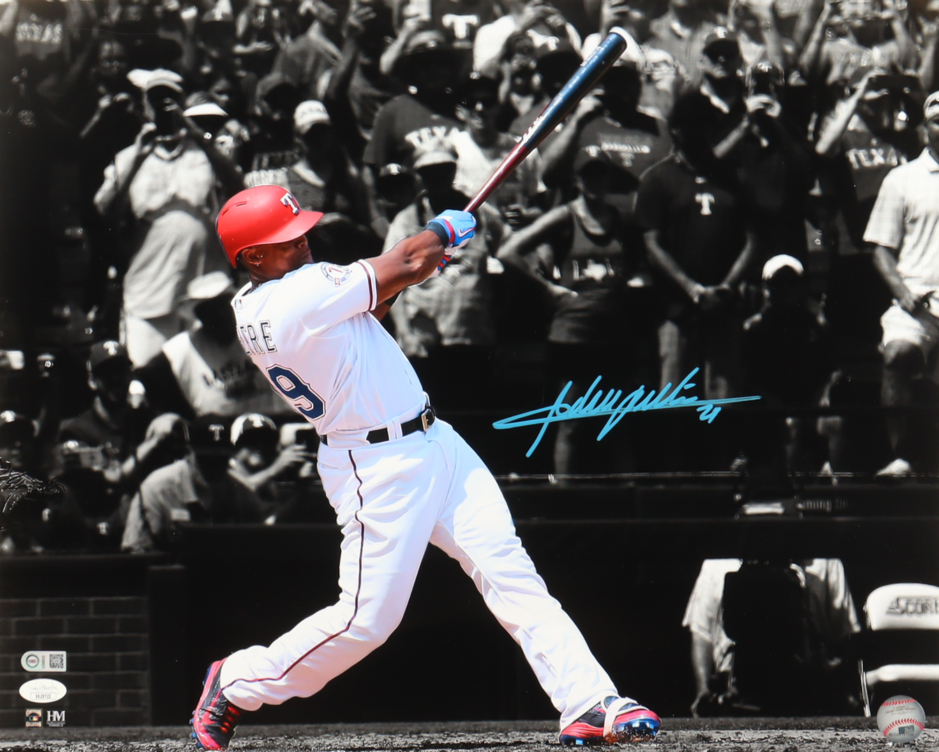 Photo measures 16" x 20" in size. Hand-signed by Adrian Beltre (Texas Rangers HOF).