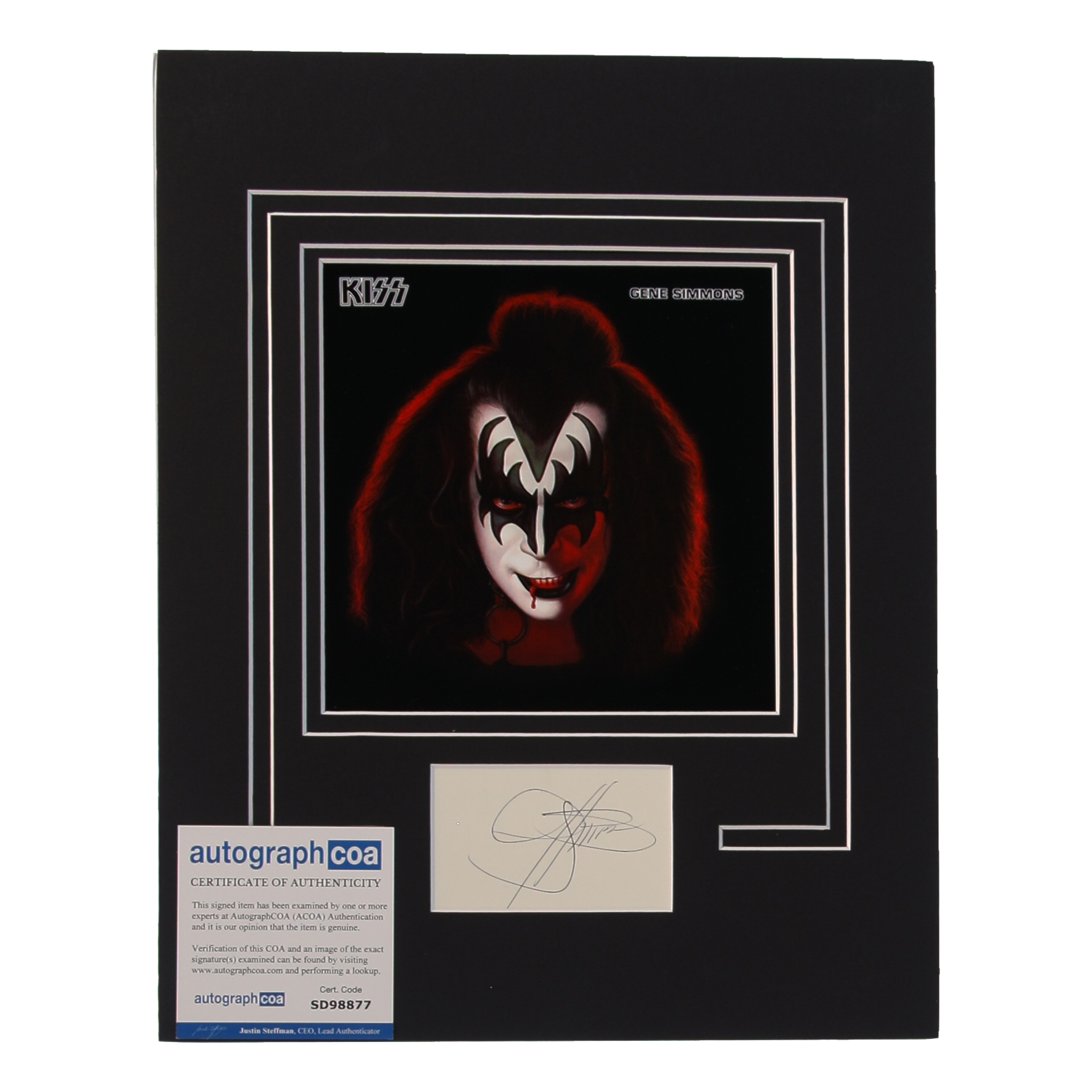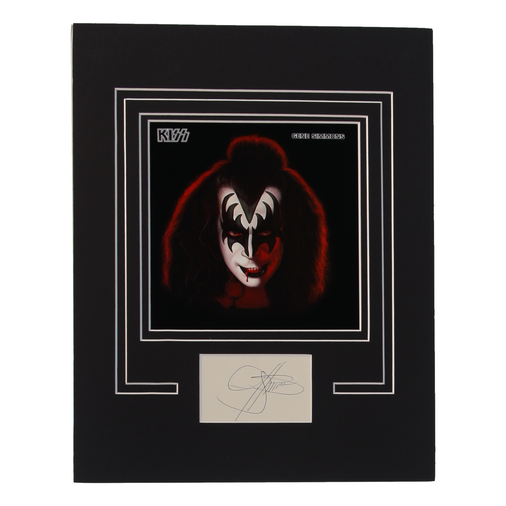 Custom photo display measures approximately 11" x 14" in size and features a cut that has been hand-signed by Gene Simmons.