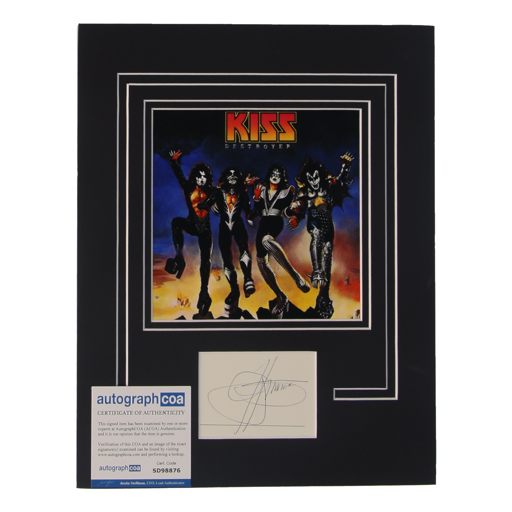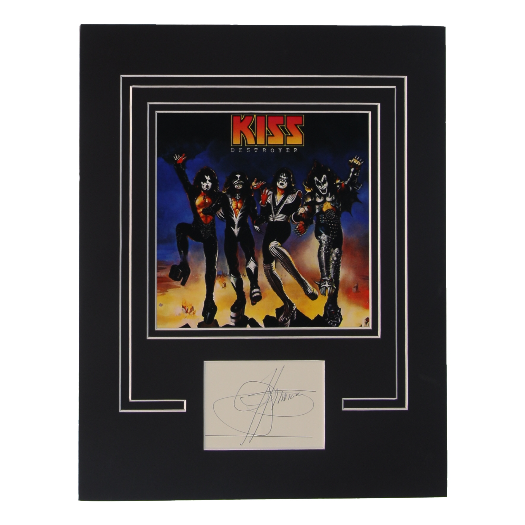 Custom photo display measures approximately 11" x 14" in size and features a cut that has been hand-signed by Gene Simmons.