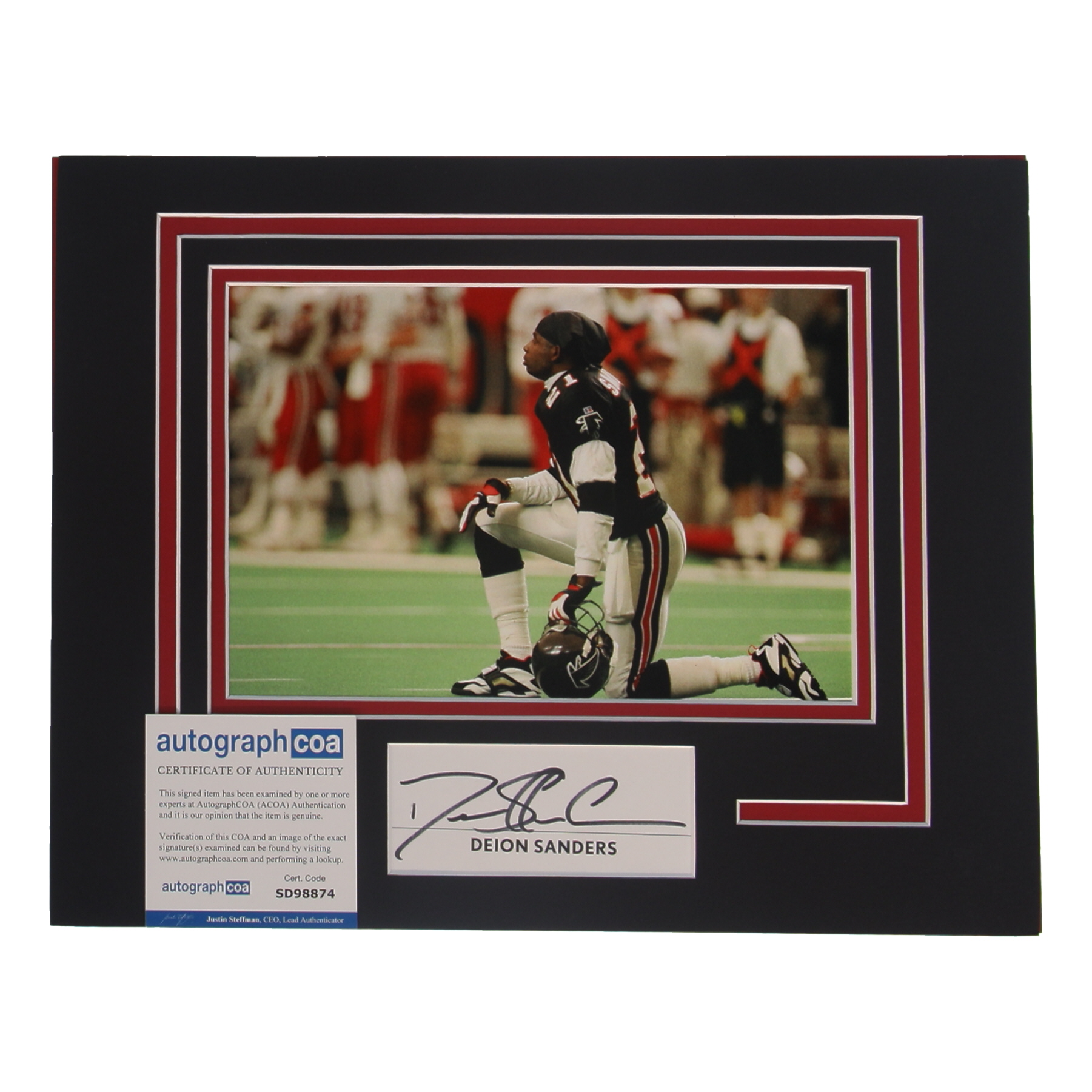 Deion Sanders Signed Falcons Custom Matted Cut Display (ACOA)