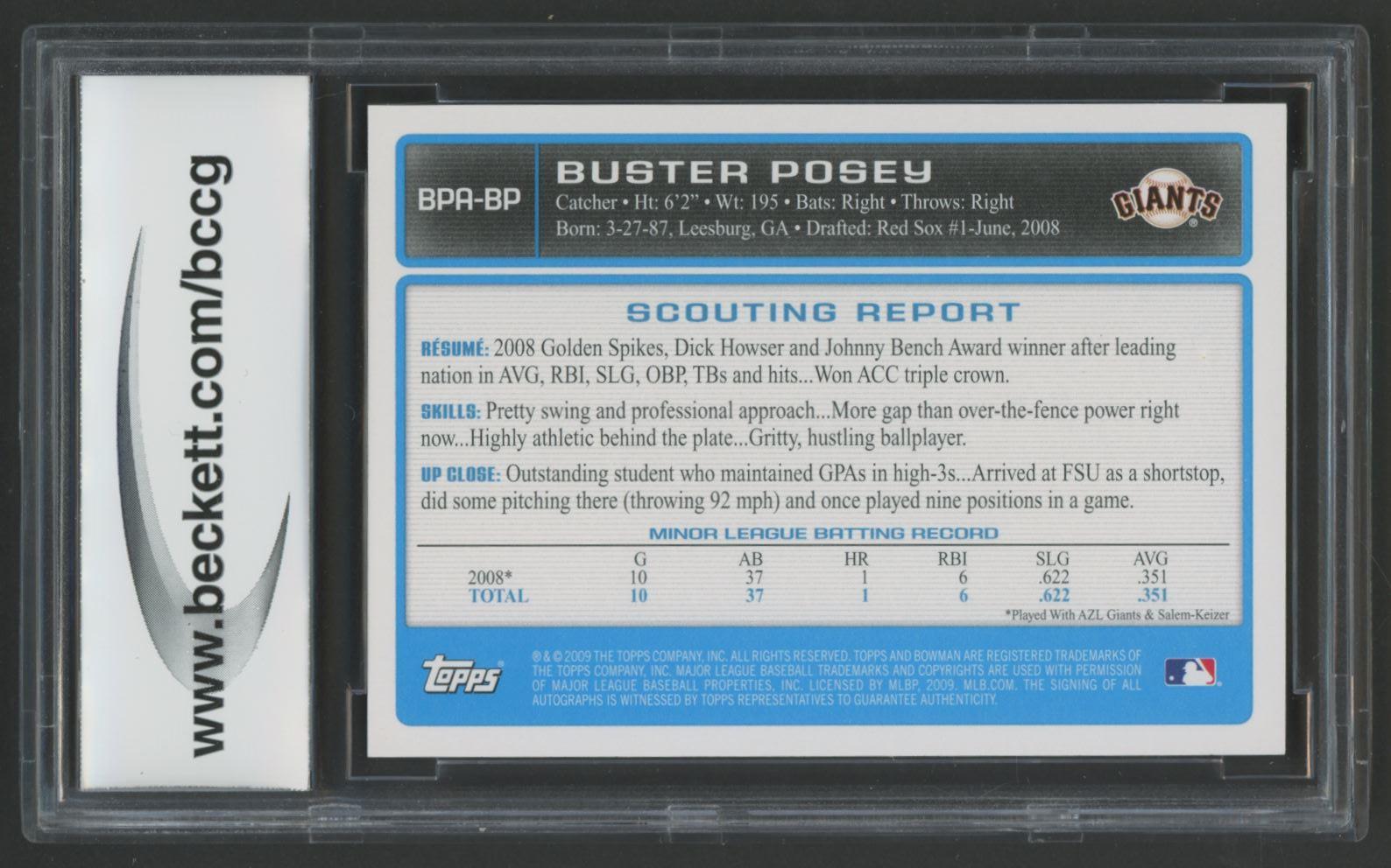Buster Posey 2009 Bowman Prospects Autographs #BPABP (BCCG 10)