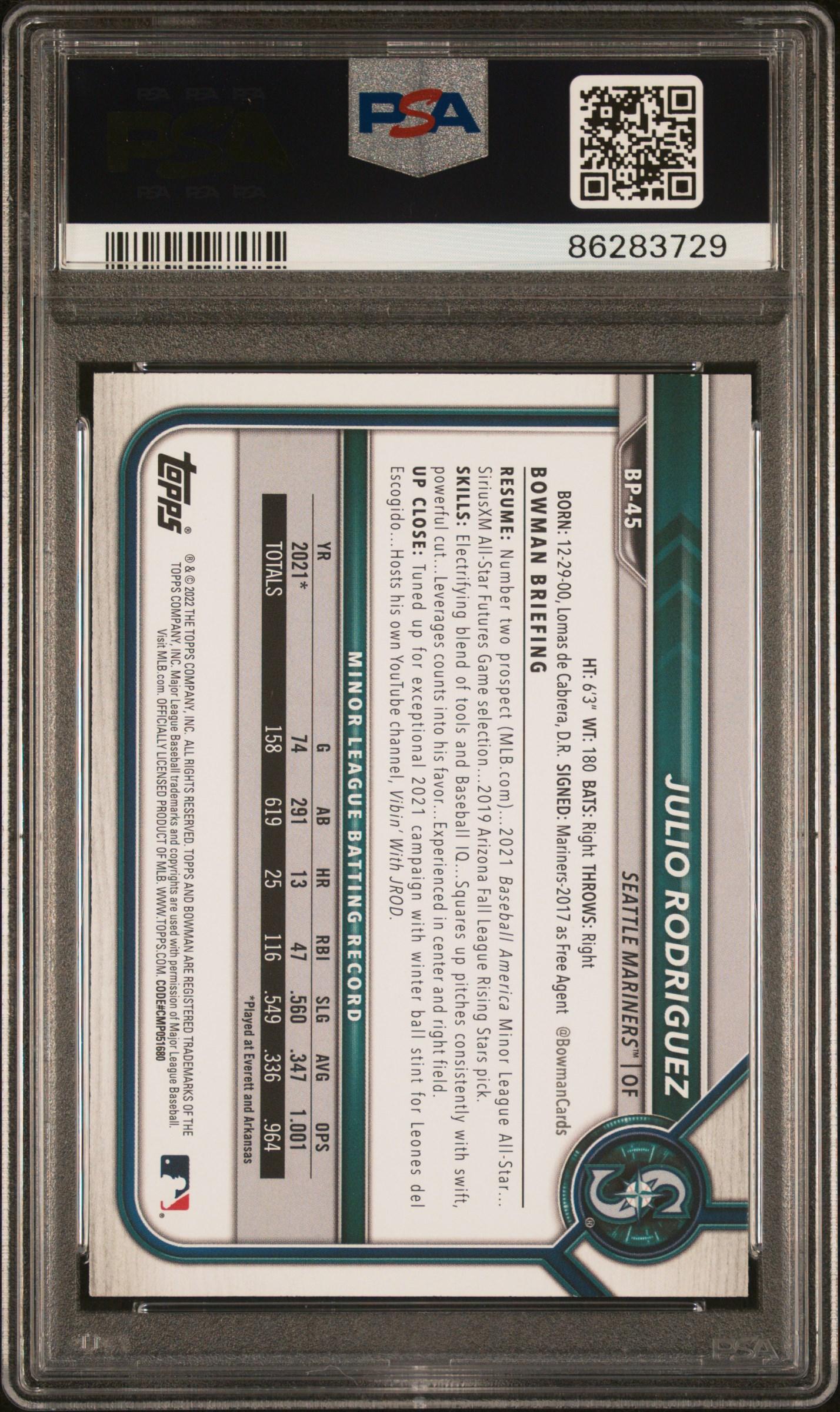 Julio Rodriguez 2022 Bowman Paper Prospects #BP45 RC (PSA 10)