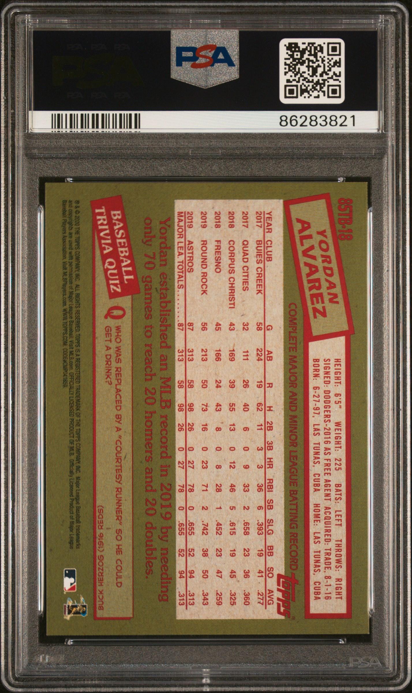 Yordan Alvarez 2020 Topps Update 1985 35th Anniv #85TB18 RC (PSA 10)