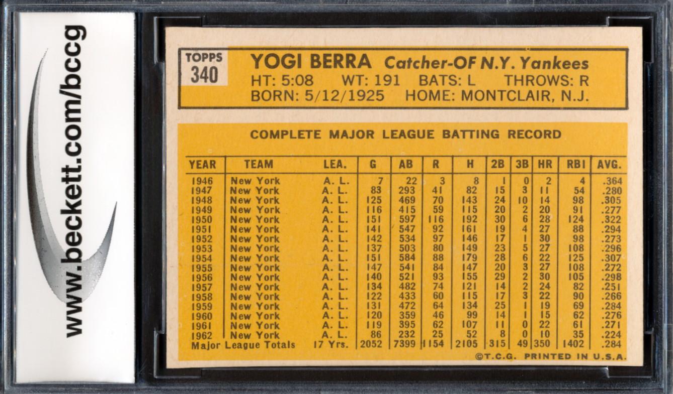 Yogi Berra 1963 Topps #340 (BCCG 8)