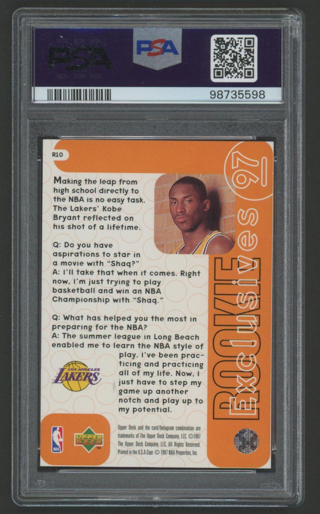Kobe Bryant 1996 Upper Deck Rookie Exclusives #R10 (PSA 8)