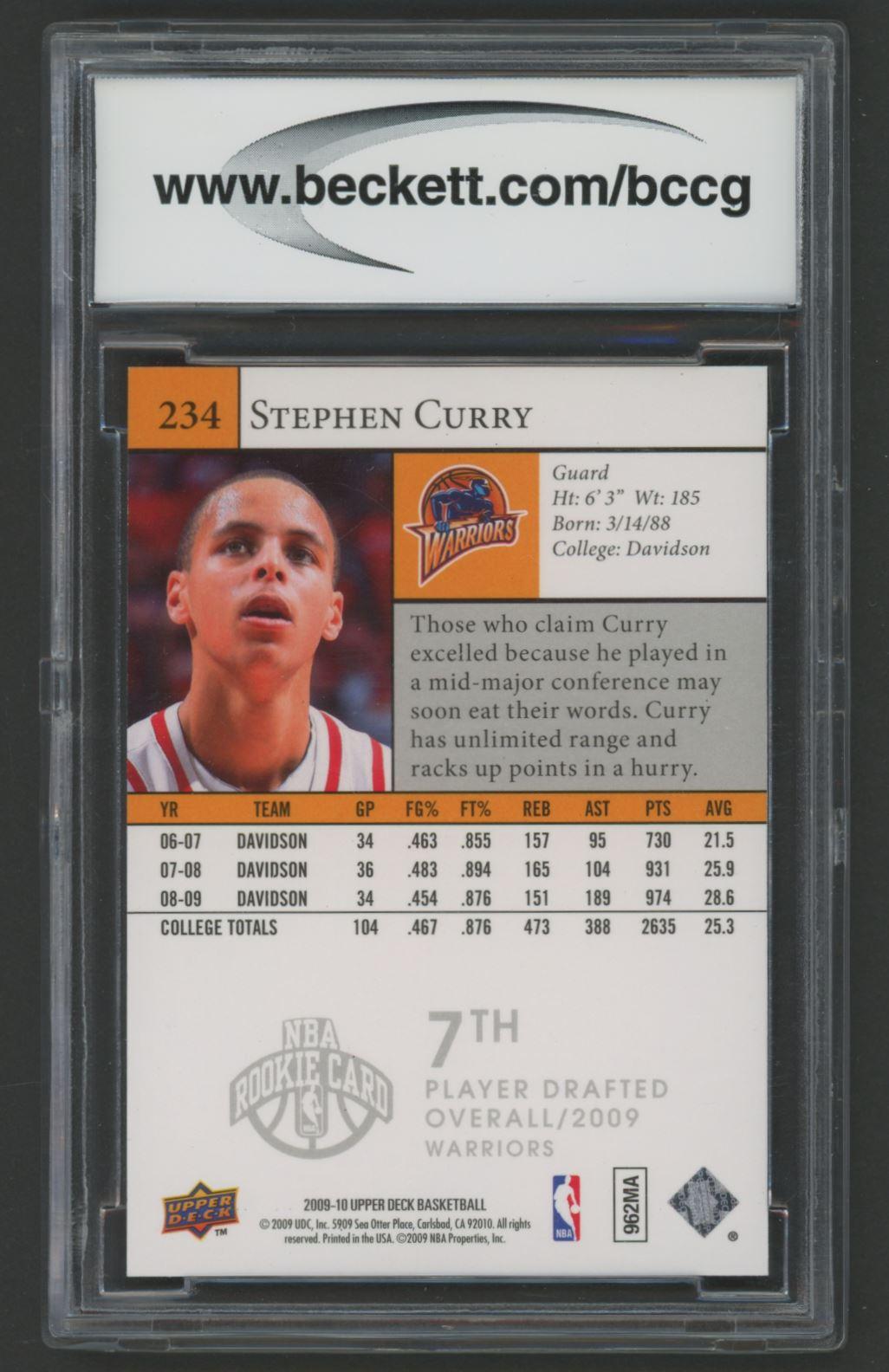 Stephen Curry 2009-10 Upper Deck SP #234 RC (BCCG 10)