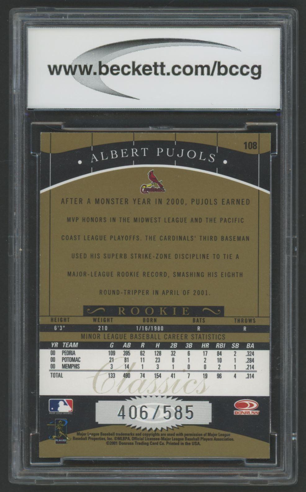 Albert Pujols 2001 Donruss Classics SP #108 #406/585 RC (BCCG 10)