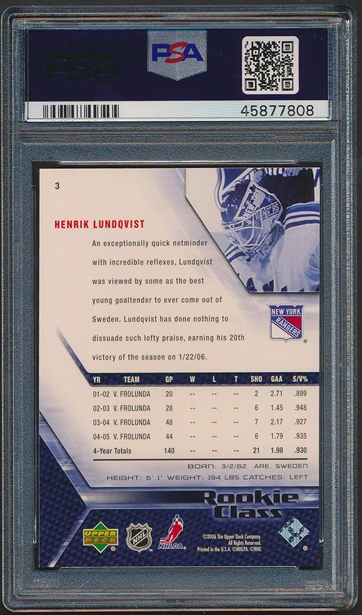 Henrik Lundqvist 2005-06 UD Rookie Class #3 (PSA 10)
