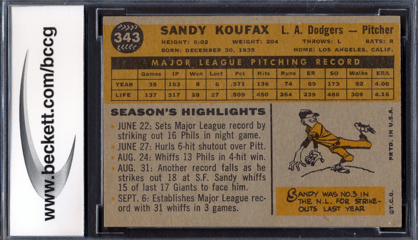 Sandy Koufax 1960 Topps #343 (BCCG 8)