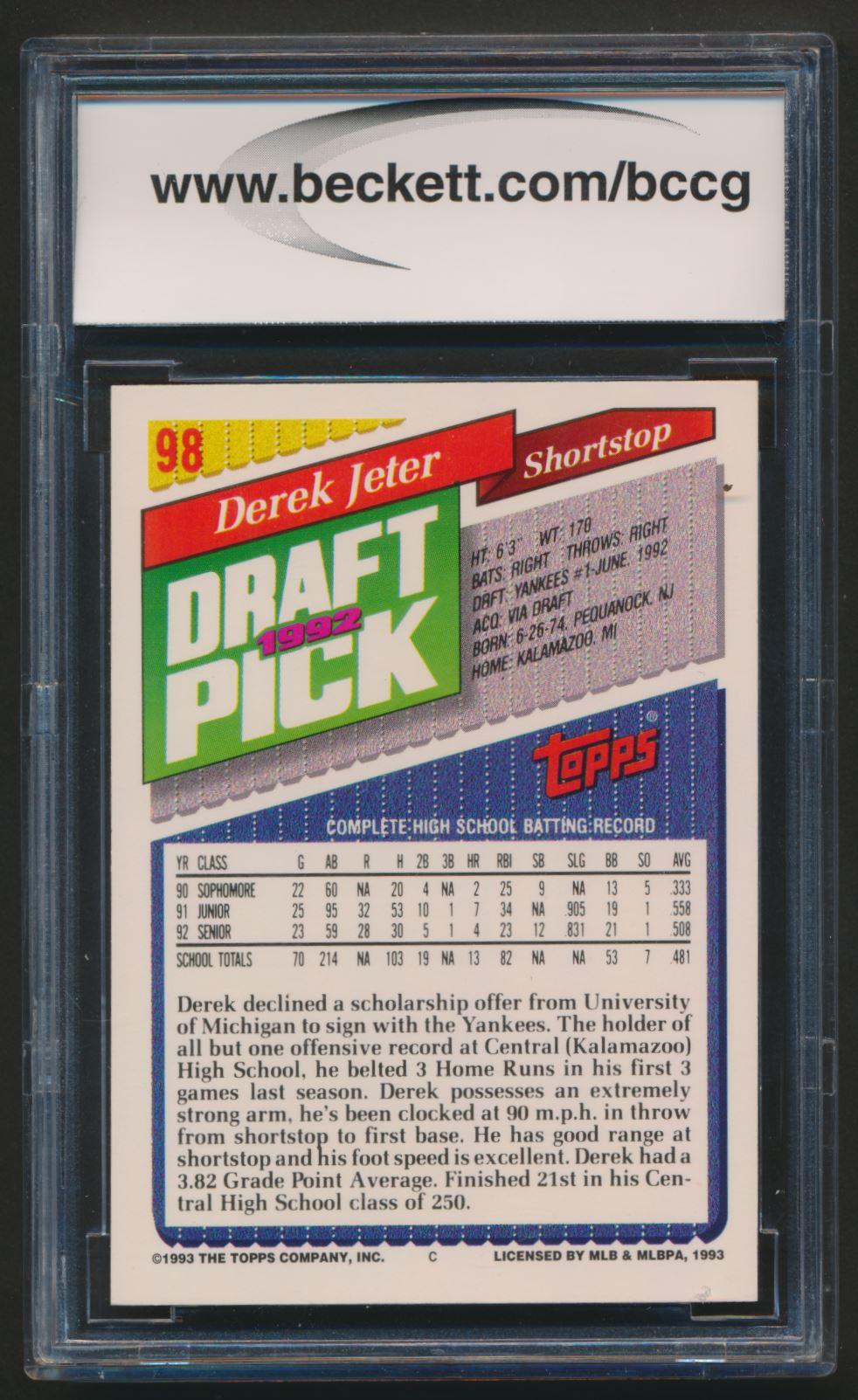 Derek Jeter 1993 Topps #98 RC (BCCG 10)