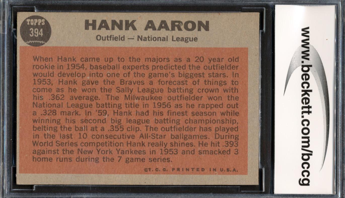 Hank Aaron 1962 Topps #394 All Star (BCCG 8)
