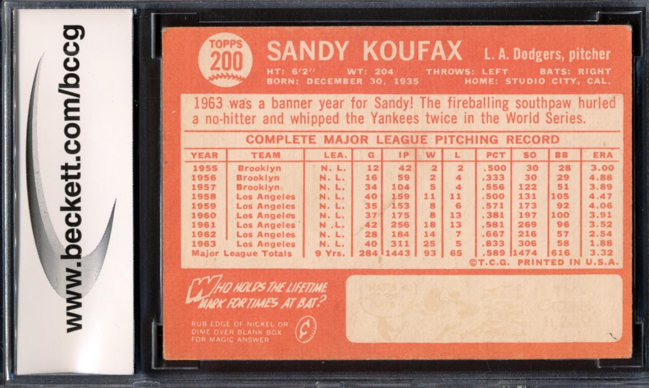 Sandy Koufax 1964 Topps #200 (BCCG 8)