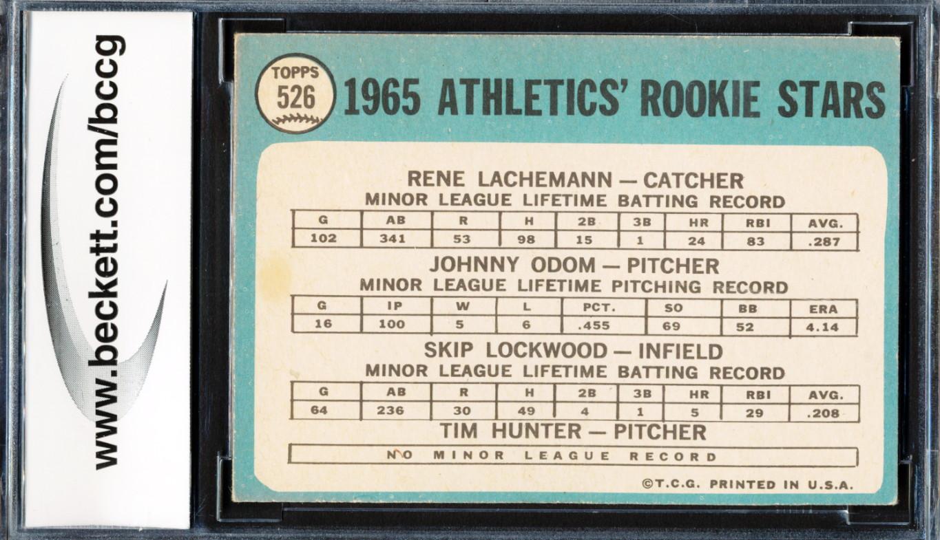 Rene Lachemann / Johnny Odom / Jim Hunter / Skip Lockwood 1965 Topps #526 Rookie Stars RC SP (BCCG 8)