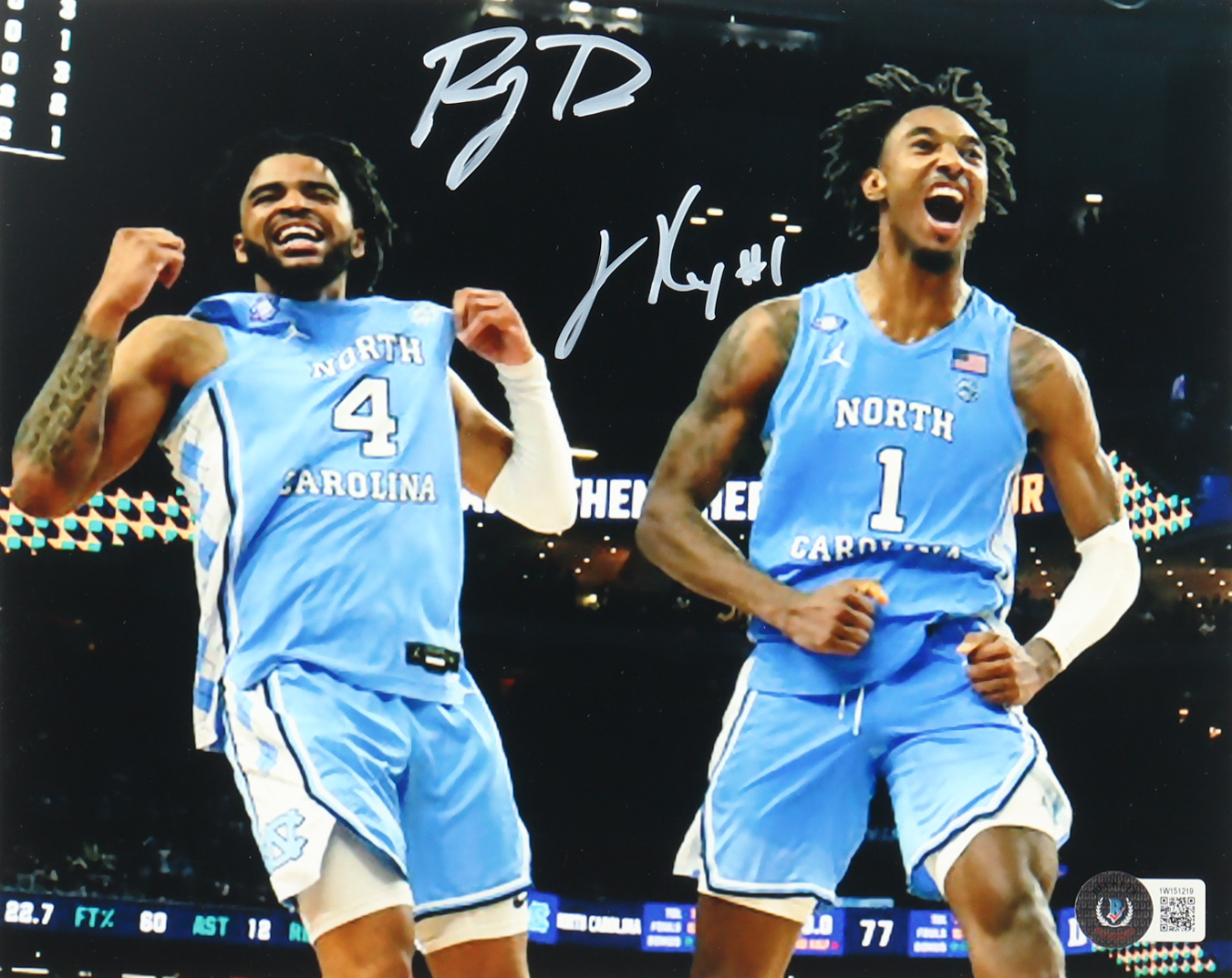 Photo measures 8" x 10" and has been hand-signed by RJ Davis (North Carolina Tar Heels) and Leaky Black (North Carolina Tar Heels).