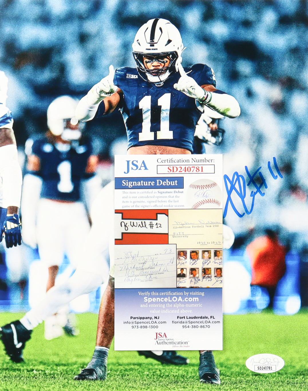 The autograph(s) includes an official James Spence Authentication (JSA) "Signature Debut" hologram and COA. "Signature Debut" is the autographed memorabilia equivalent to a rookie card. The JSA definition of a "Signature Debut" is as follows: "Any item that is autographed and received by JSA prior to the last game of the signer's official rookie season.