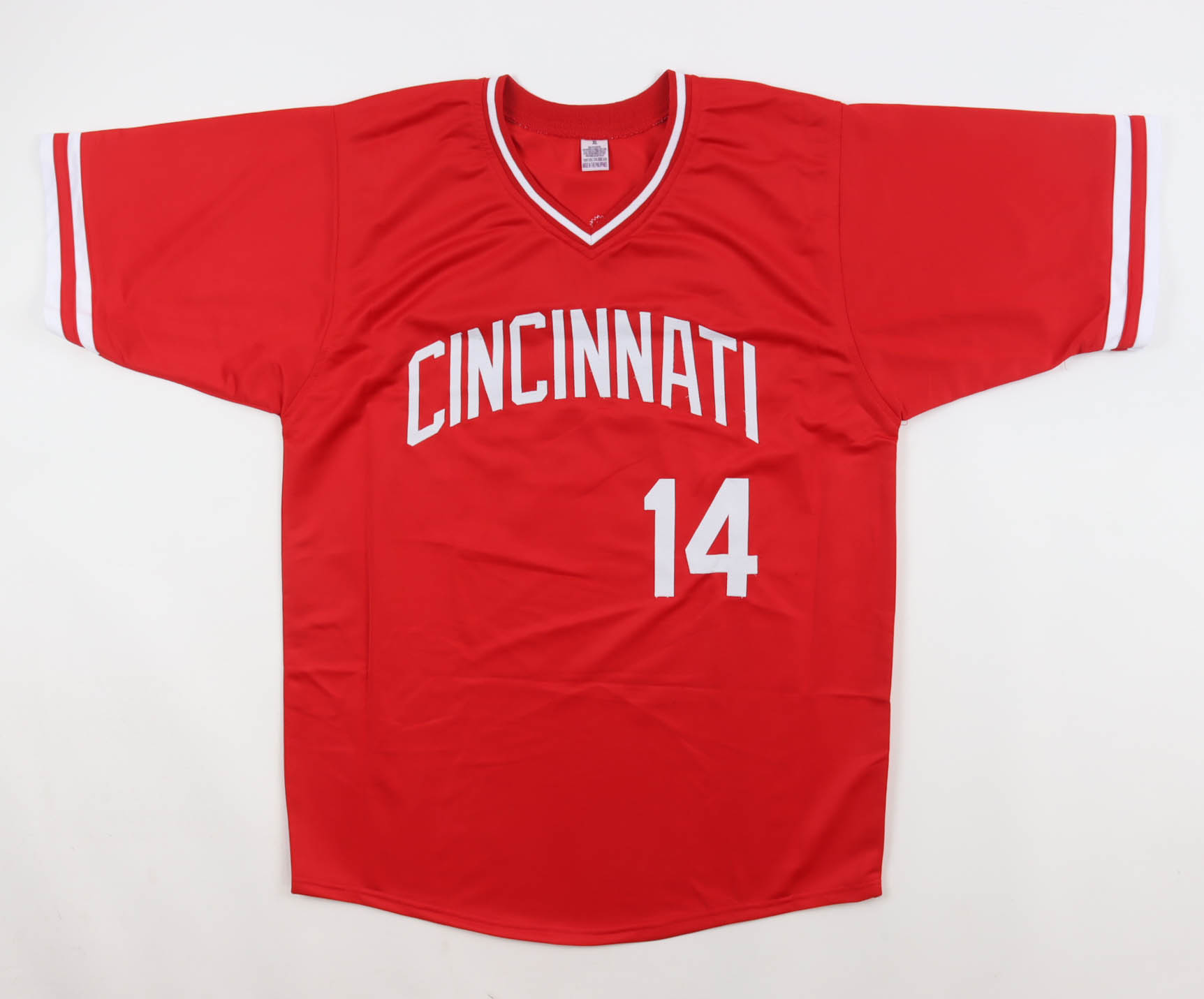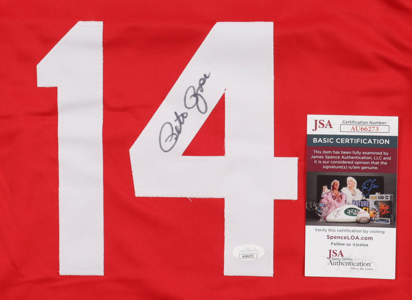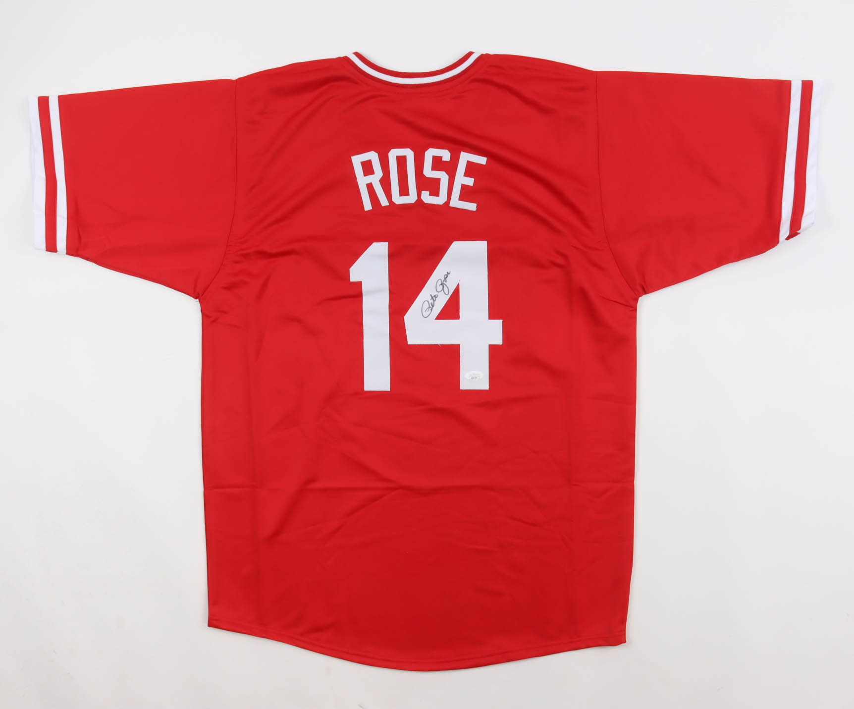 Custom jersey with everything sewn on, size XL. Hand-signed by Pete Rose (D. 2024).