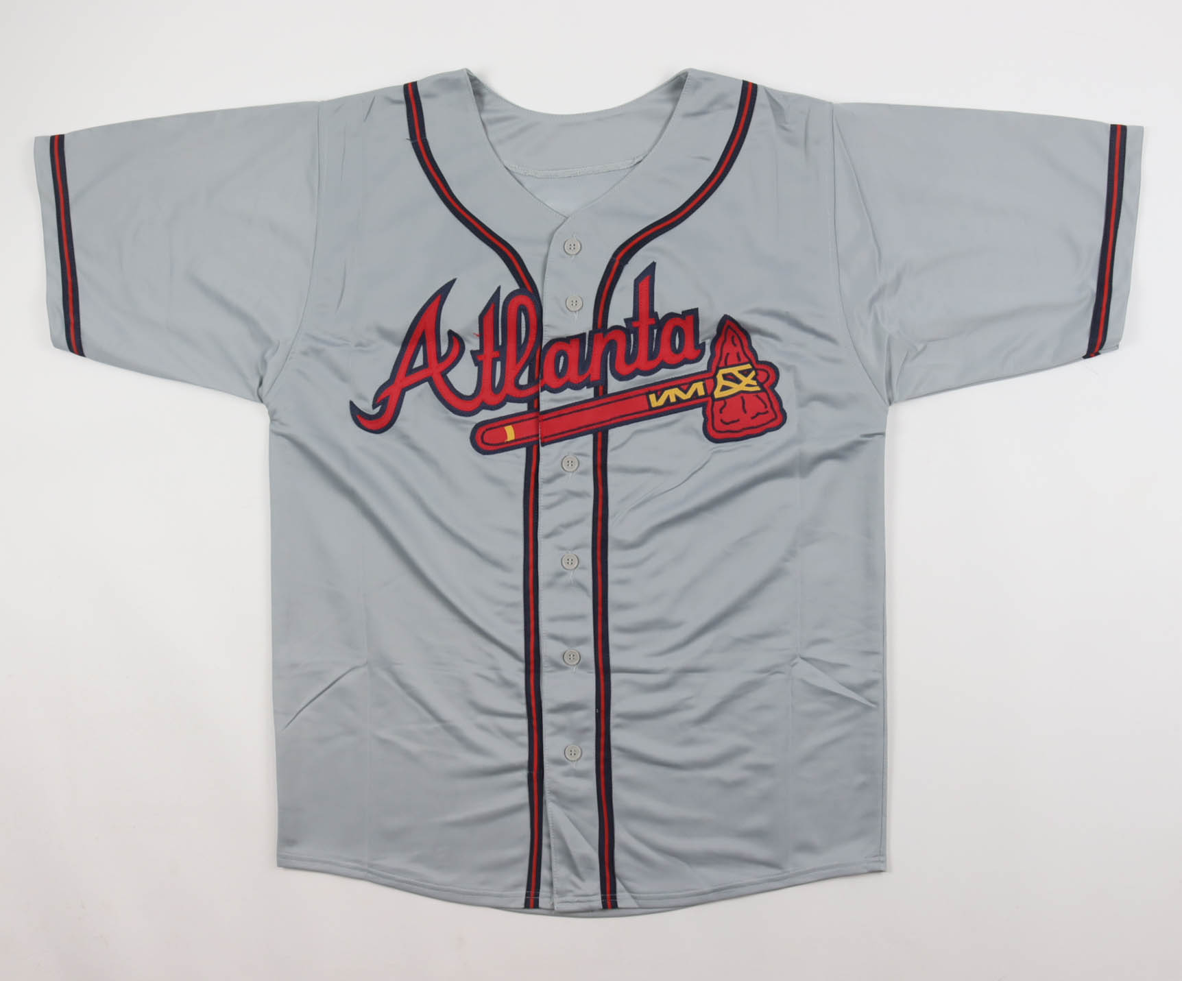 Custom jersey with everything sewn on, size XL. Hand-signed by Ronald Acuna Jr.