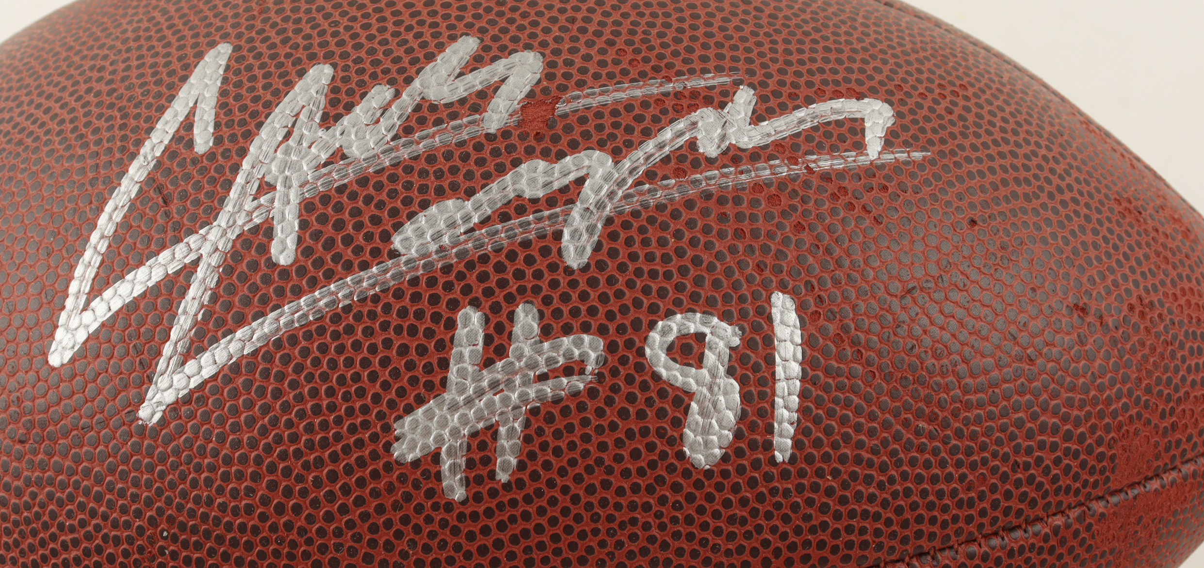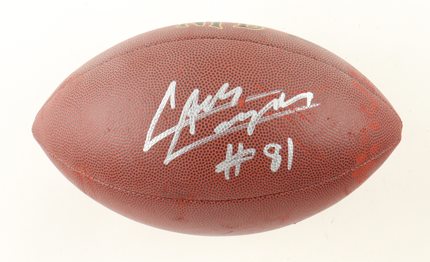 Wilson Super Grip full-size NFL football has been hand-signed by Calais Campbell (Arizona Cardinals).