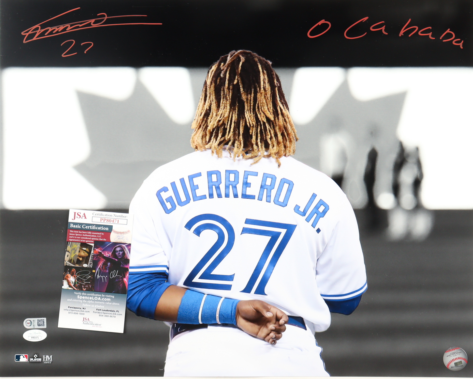 Vladimir Guerrero Jr. Signed Blue Jays 16x20 Photo Inscribed "O Canada" (JSA & USA SM)