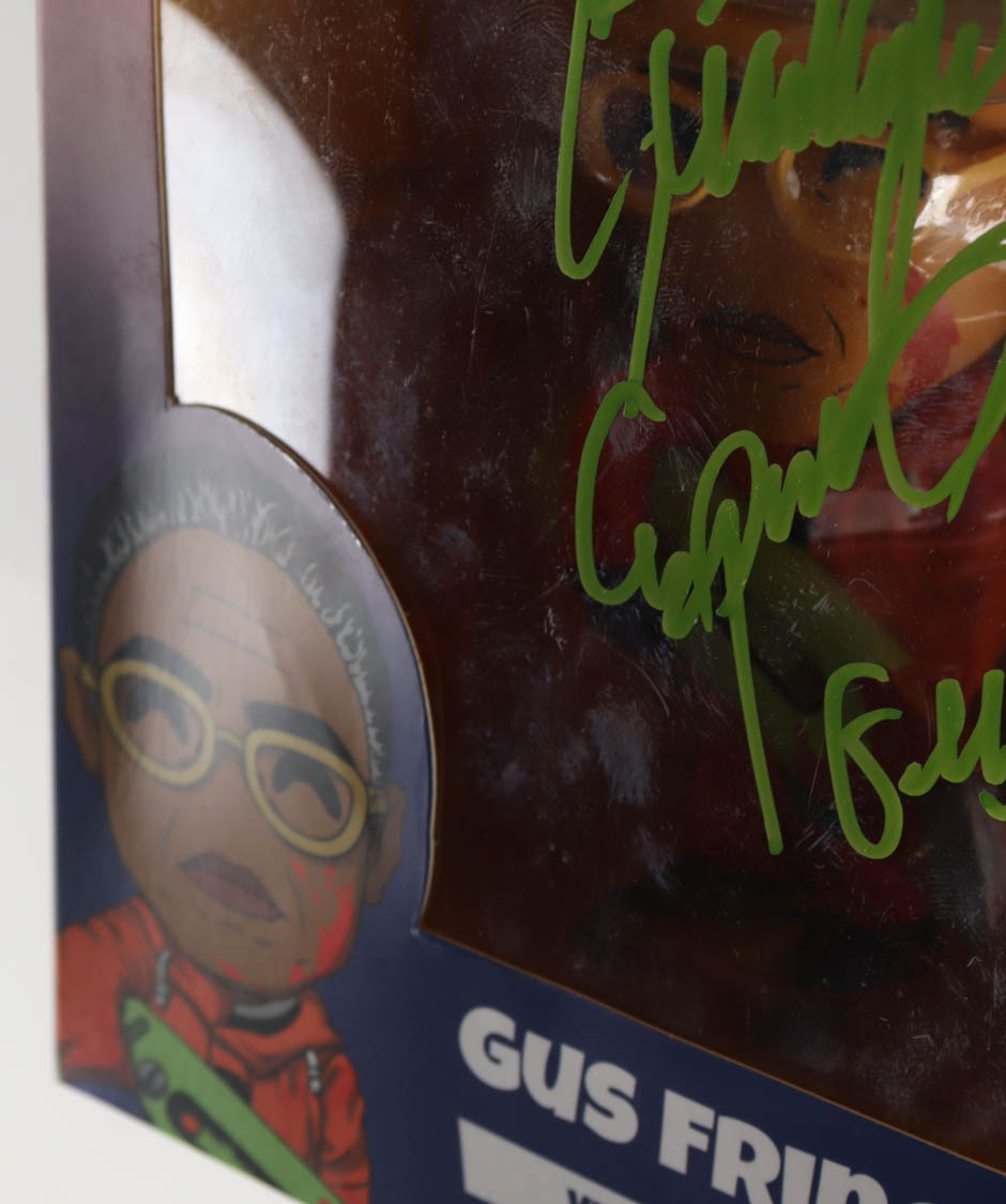 Vinyl figure measures approximately 4" tall and has been hand-signed and inscribed on the packaging by Giancarlo Esposito. Please note the packaging window is scuffed throughout, see photos for more details.