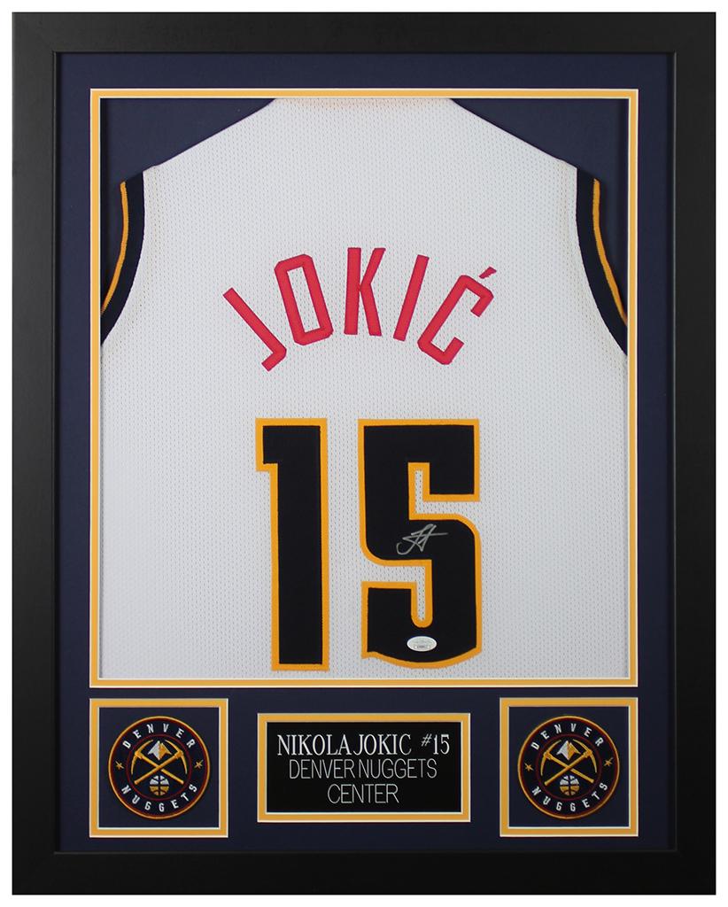 Custom frame measures 24" x 30" in size and features a jersey that has been hand signed by Nikola Jokic.