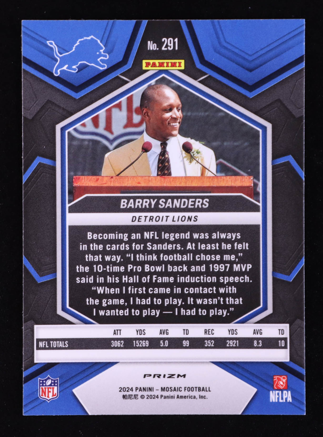 Barry Sanders 2024 Panini Mosaic Mosaic Genesis #291 HOF