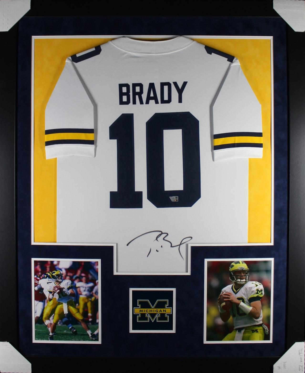 Tom Brady Signed Michigan Wolverines Custom Framed Jordan Authentic Jersey with Suede Matting (Fanatics)