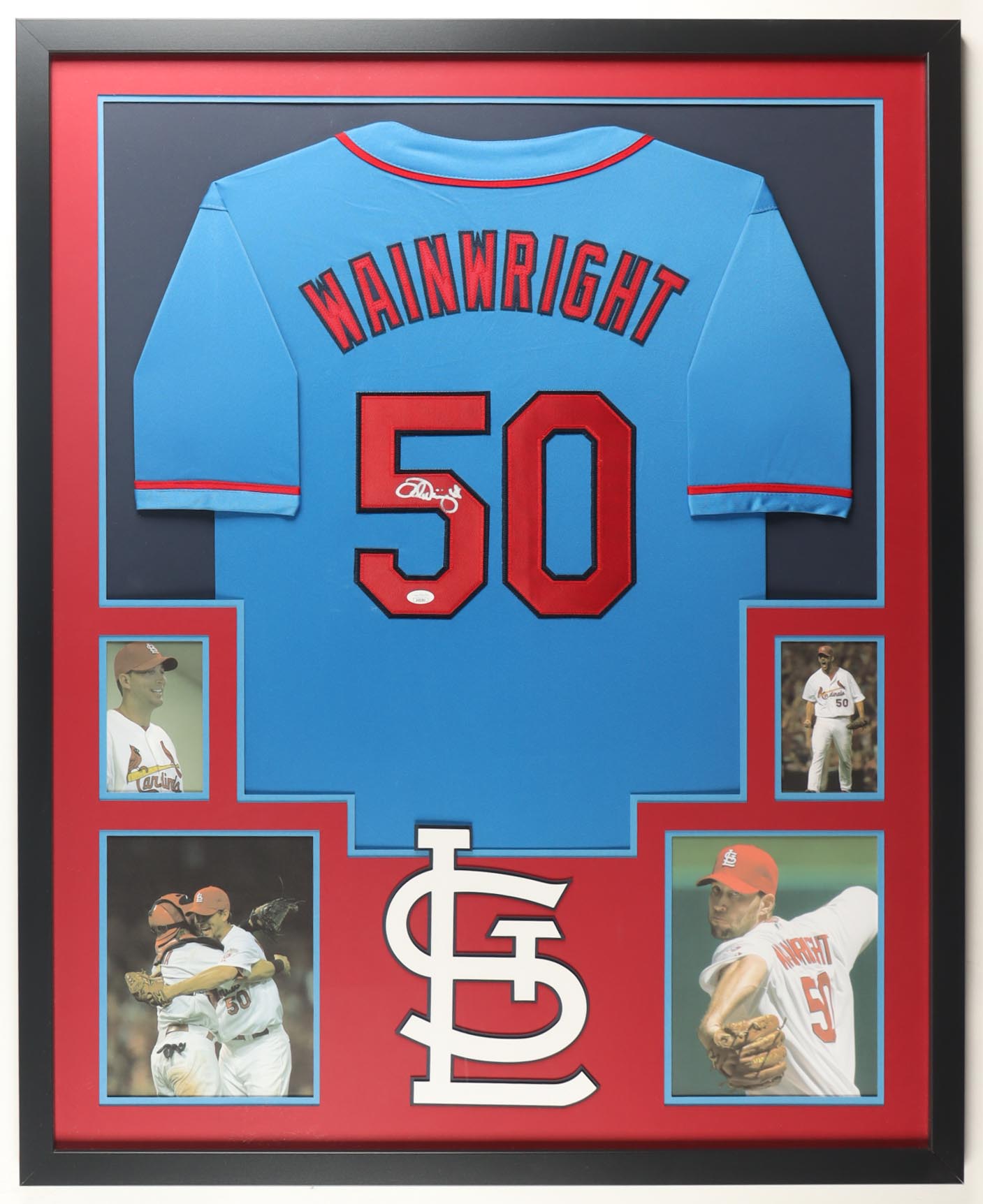 Adam Wainwright Signed Cardinals Custom Framed Jersey Display (JSA)