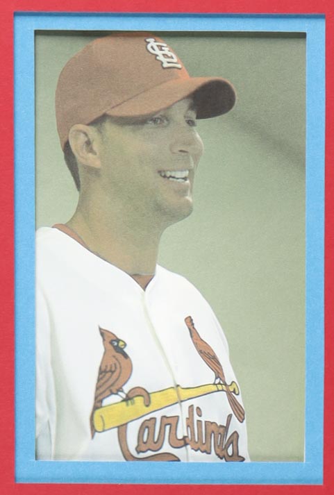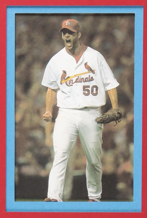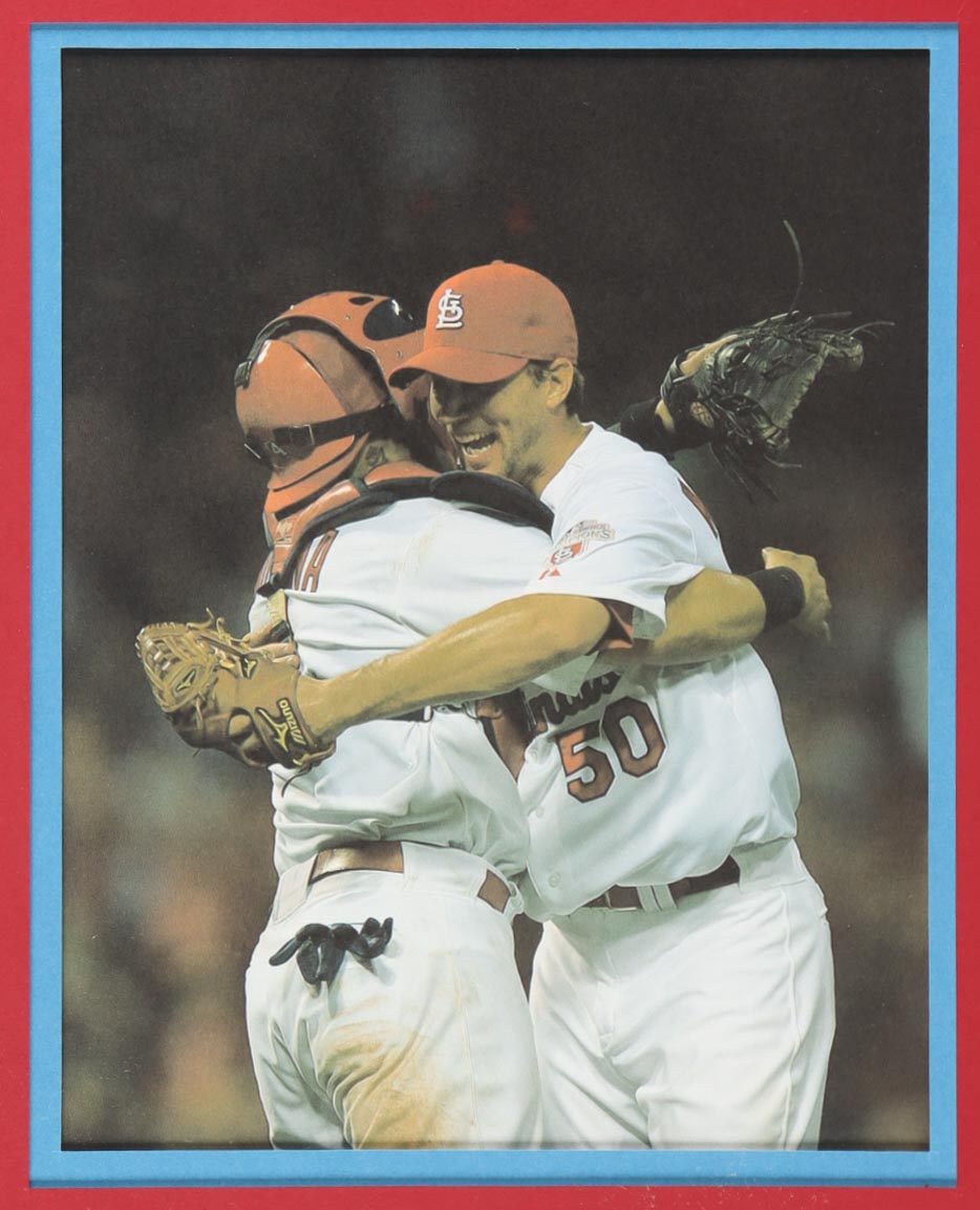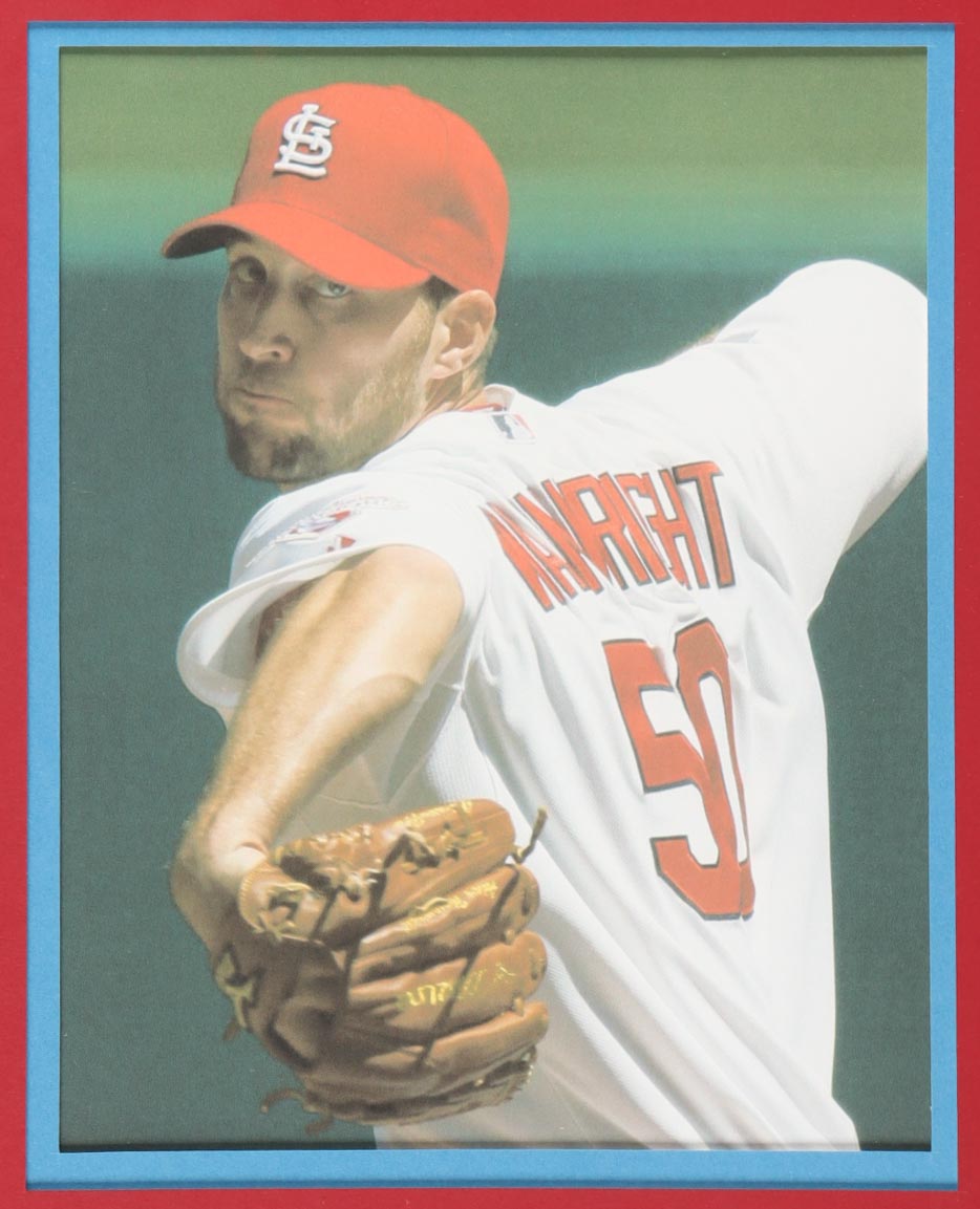 Custom frame measures 34" x 42" in size. Jersey has been hand-signed by Adam Wainwright (St. Louis Cardinals). Display also includes (4) unsigned photographs and a team logo patch.