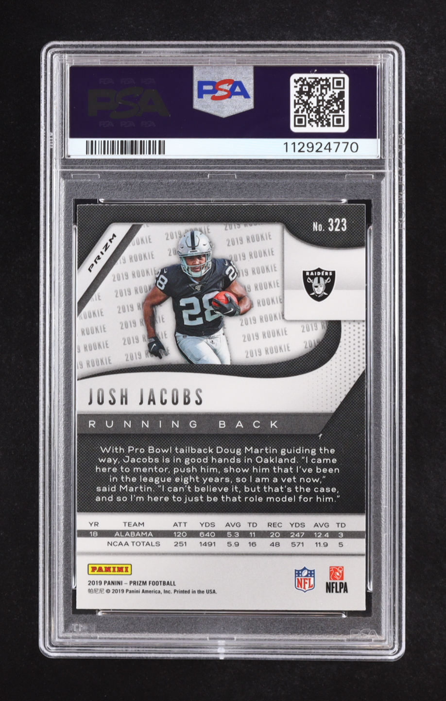 Josh Jacobs 2019 Panini Prizm Prizms #323 RC (PSA 9)