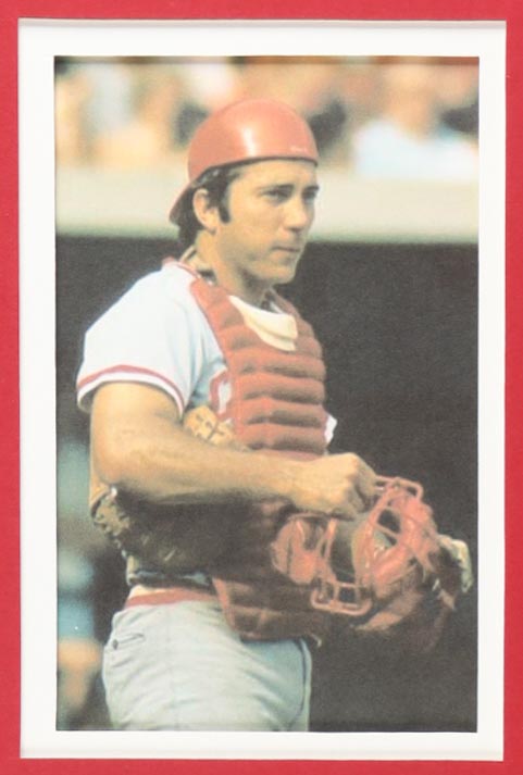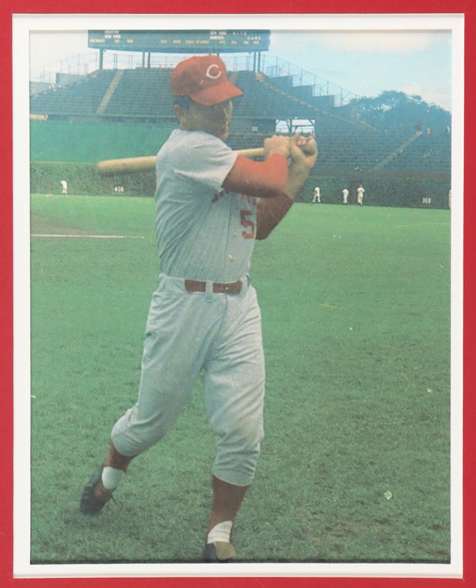 Custom frame measures 34" x 42" in size. Jersey has been hand-signed by Johnny Bench (Cincinnati Reds). Display also includes (4) unsigned photographs and a team logo patch.