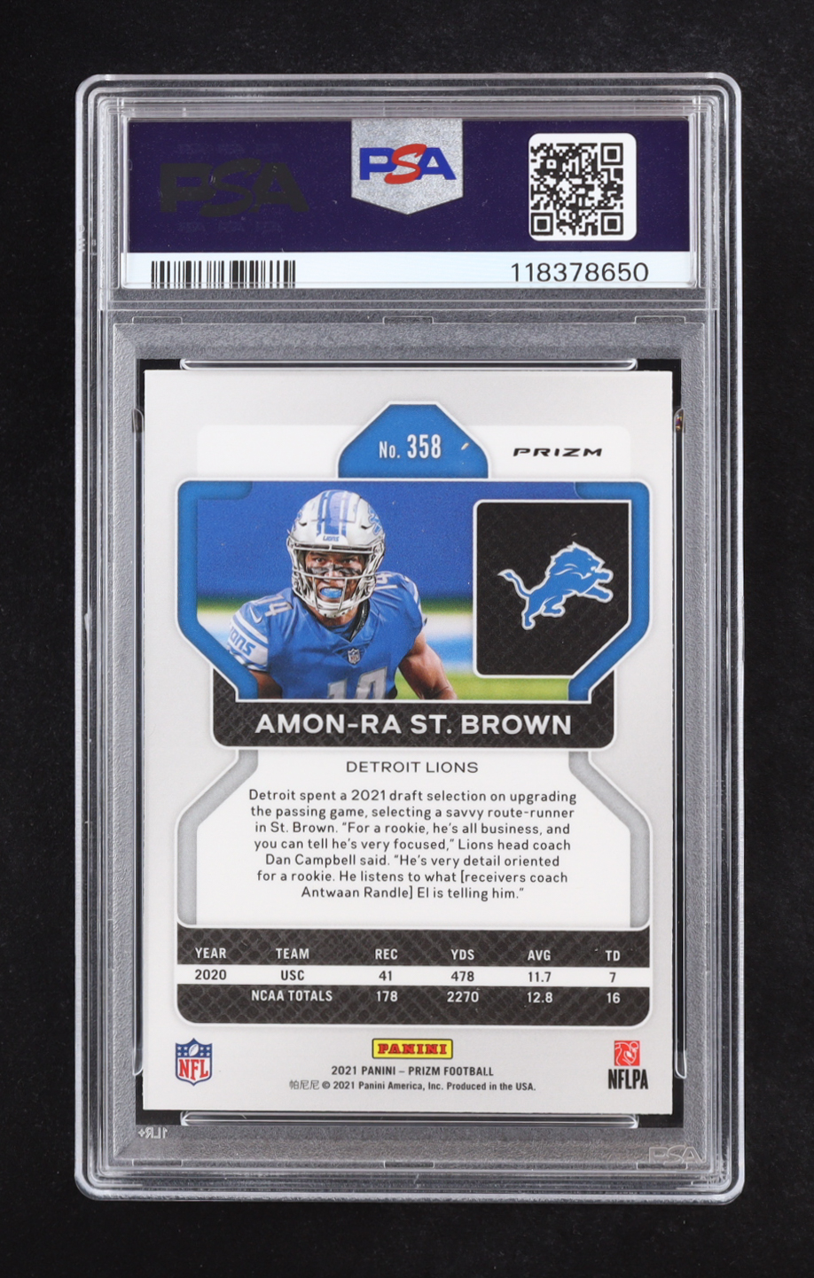 Amon-Ra St. Brown 2021 Panini Prizm Prizms Pink #358 RC (PSA 9)