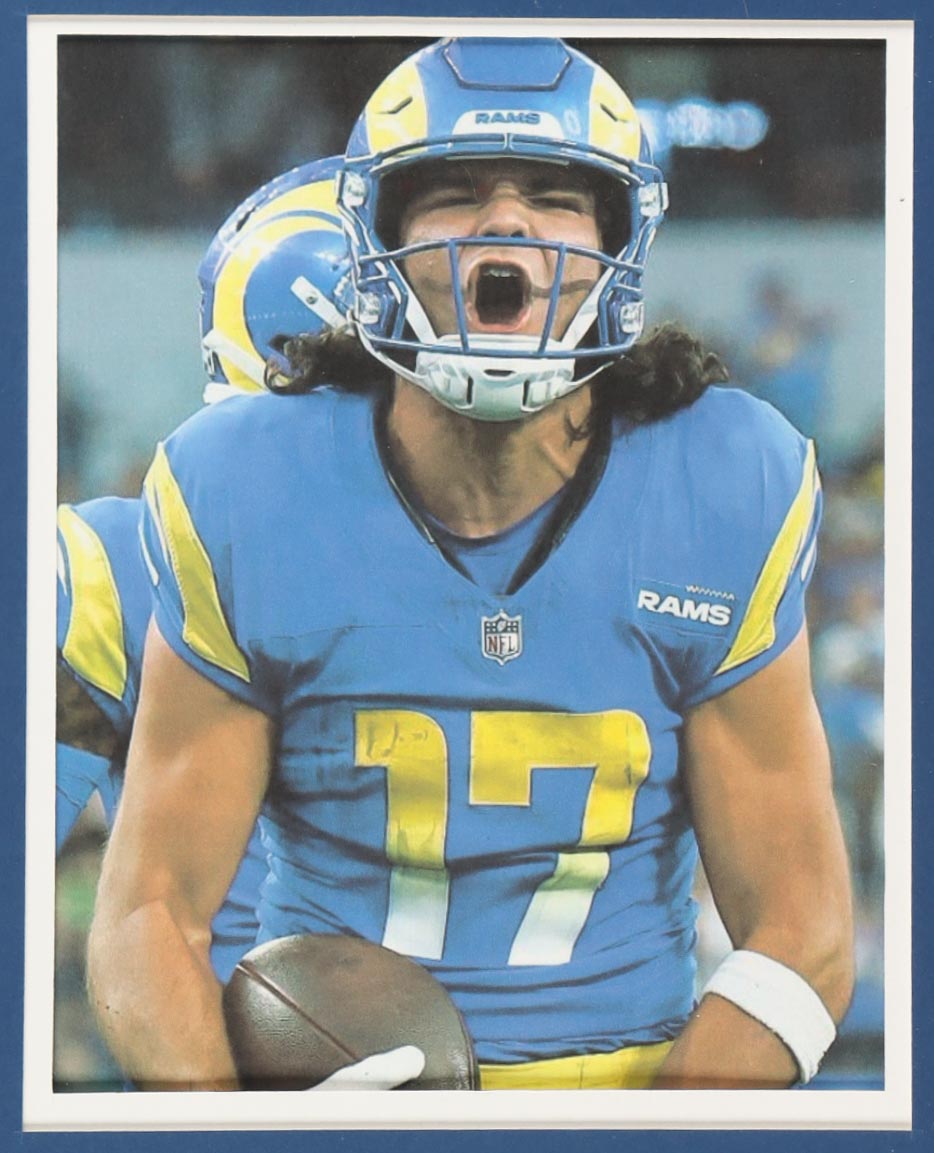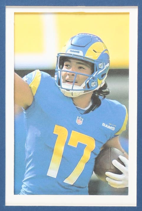 Custom frame measures 34" x 42" in size. Jersey has been hand-signed by Puka Nacua (Los Angeles Rams). Display also includes (4) unsigned photographs and a team logo patch.