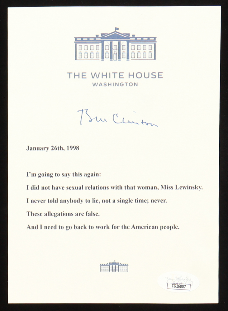 Bill Clinton Signed "Clinton-Lewinsky Scandal" 5x7 Print (JSA)