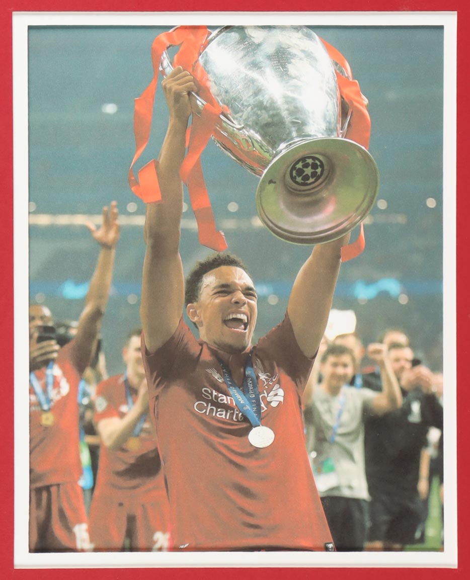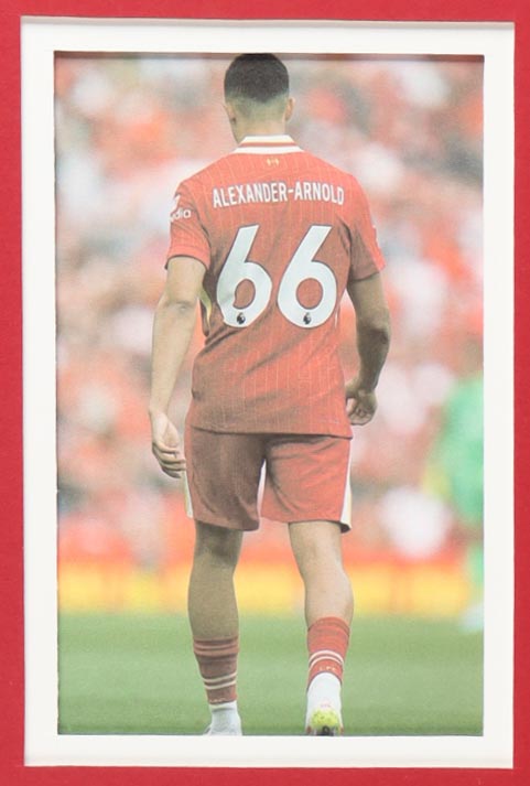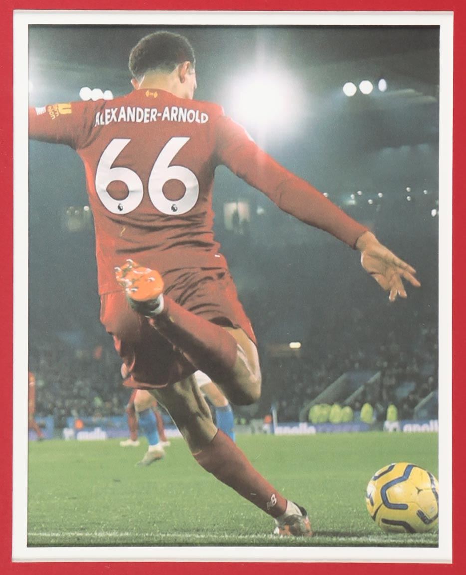 Custom frame measures 34" x 42" in size. Jersey has been hand-signed by Trent Alexander-Arnold (Liverpool FC). Display also includes (4) unsigned photographs and a team logo patch.