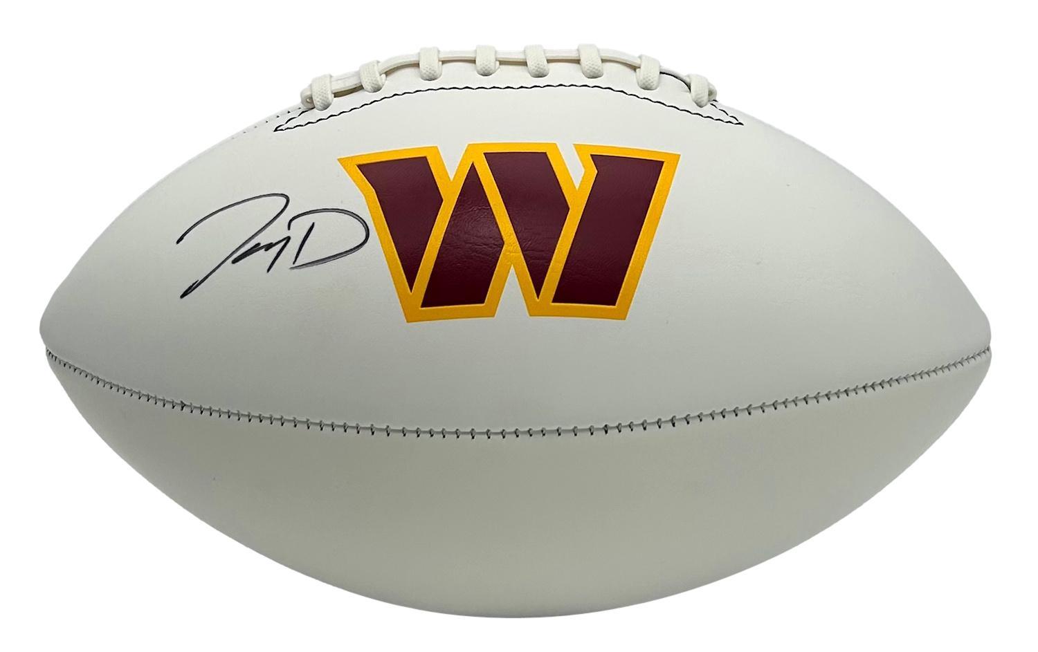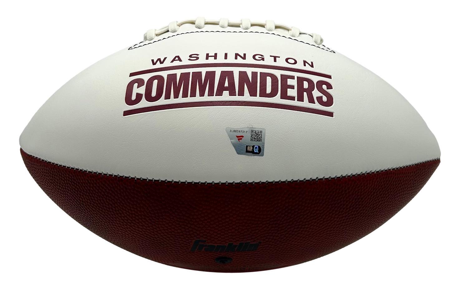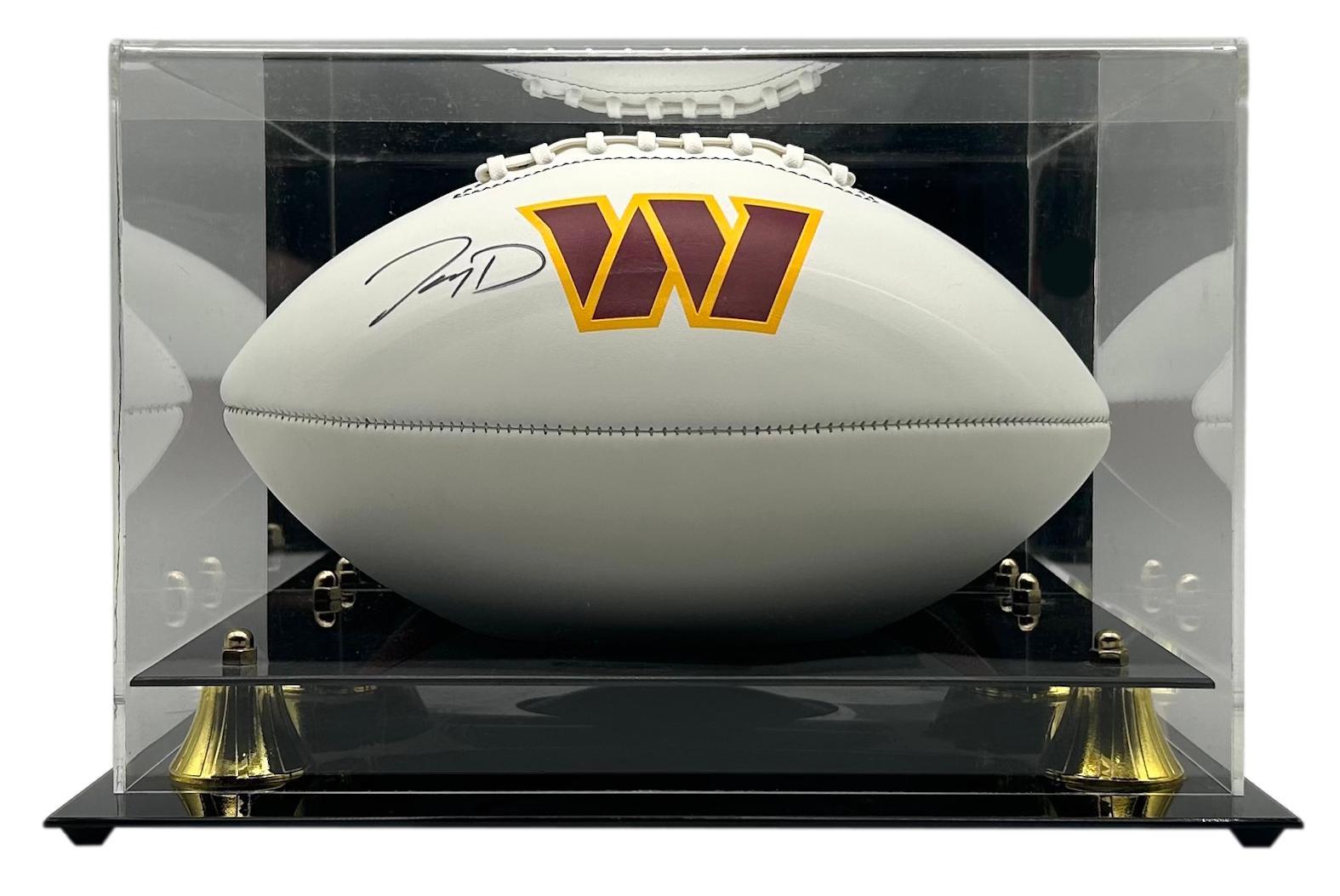 Washington Commanders logo football. Hand-signed by Jayden Daniels. Display case is included.
