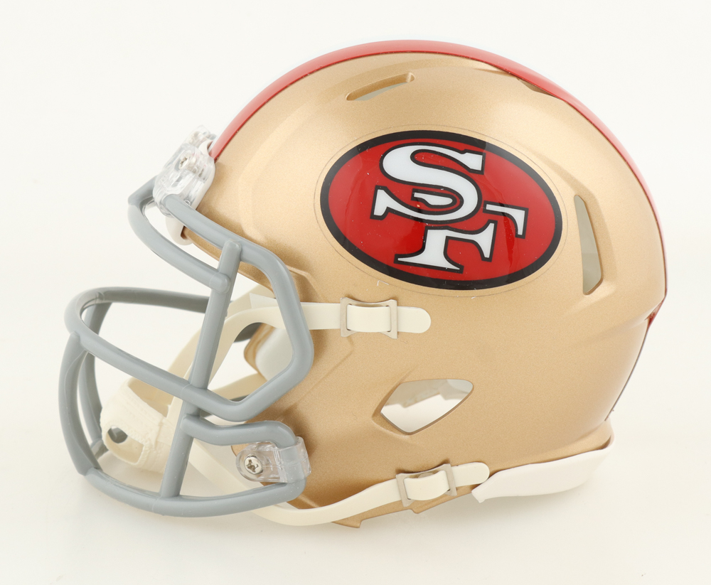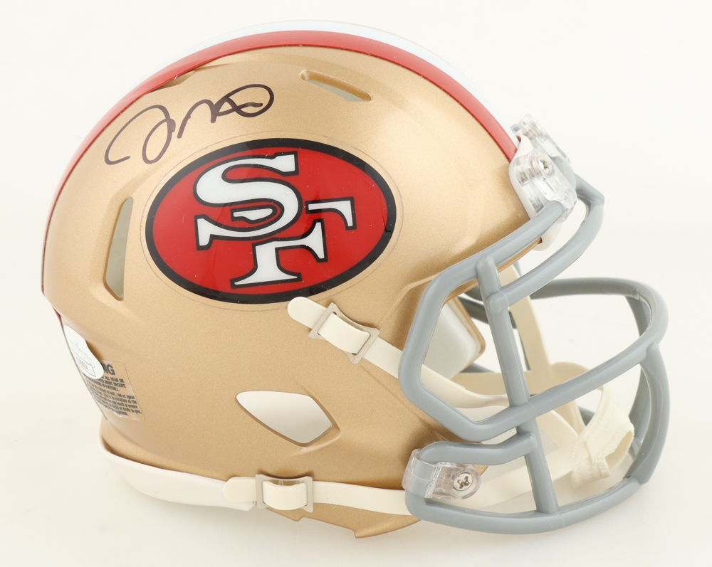 Riddell San Francisco 49ers Speed mini helmet. Hand-signed by Joe Montana (HOF).