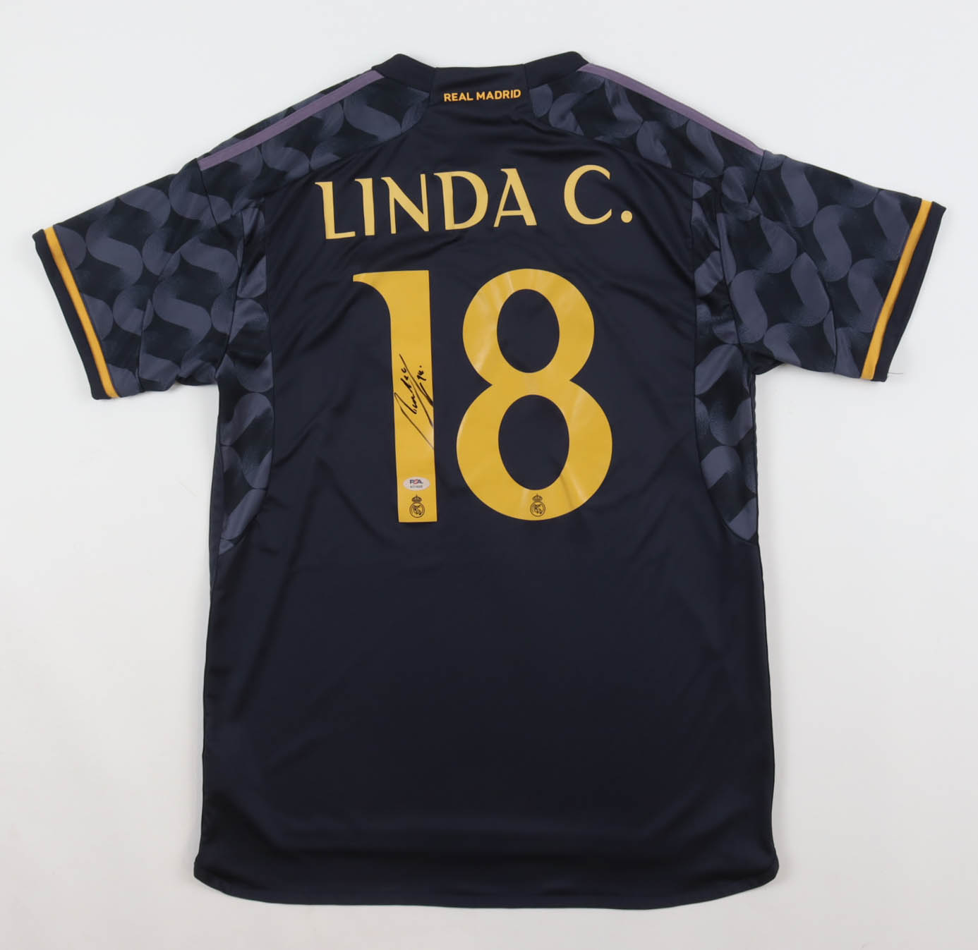 Adidas authentic jersey with everything pressed on, size XL. Hand-signed by Linda Caicedo.