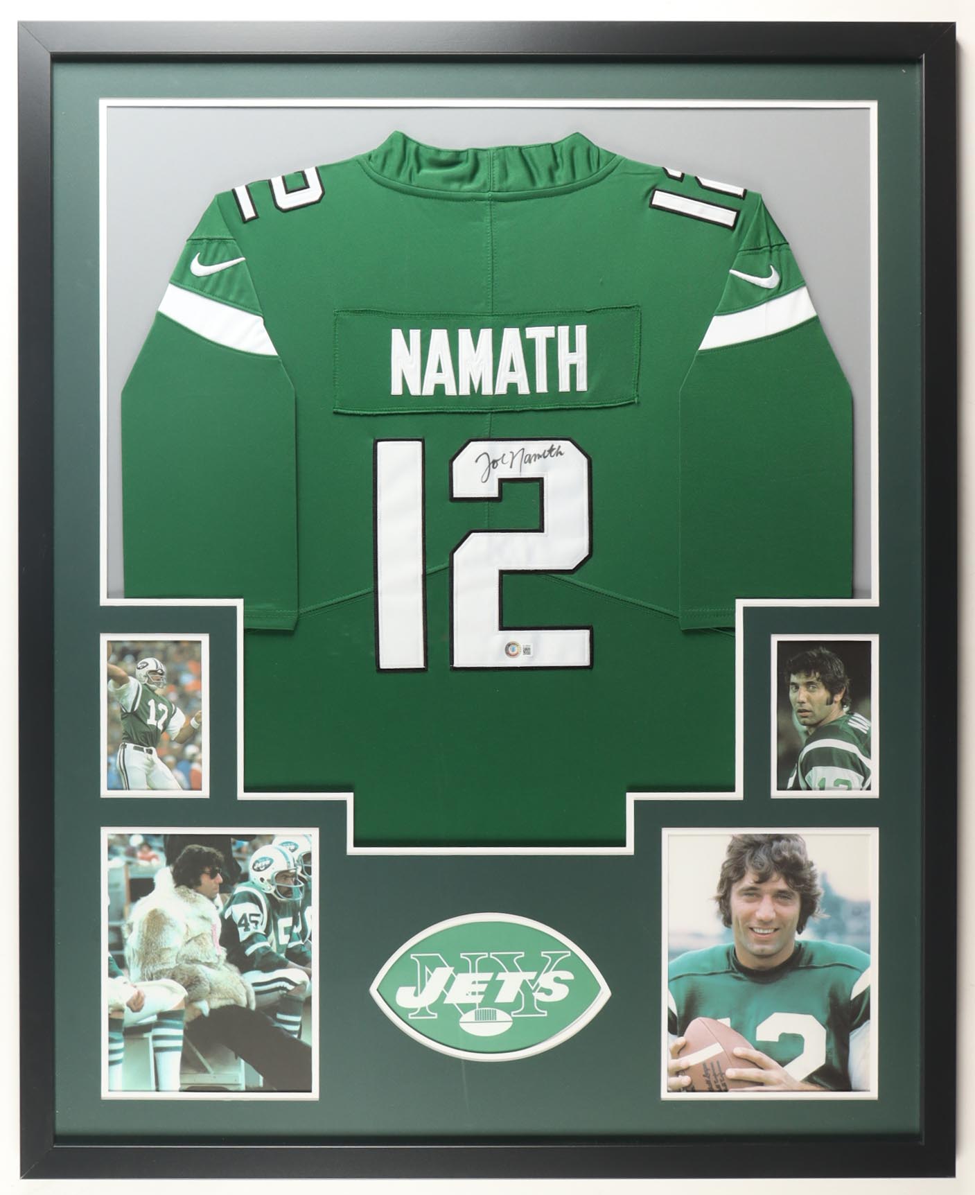 Joe Namath Signed Jets Custom Framed Jersey Display (Beckett)