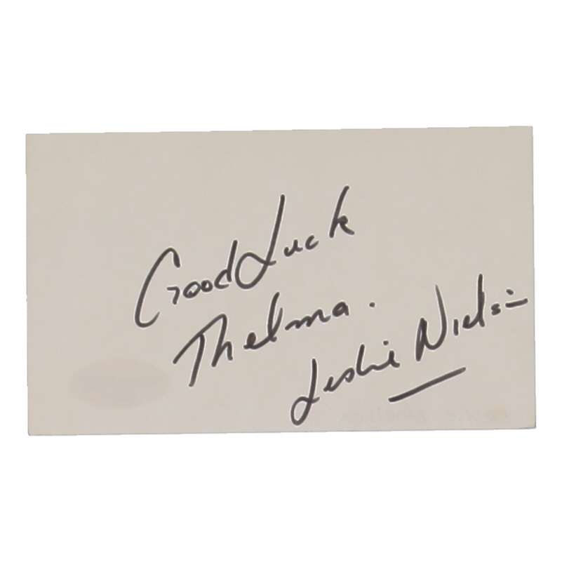 Leslie Nielsen Signed 3x5 Cut Inscribed "Good Luck" (ACOA)
