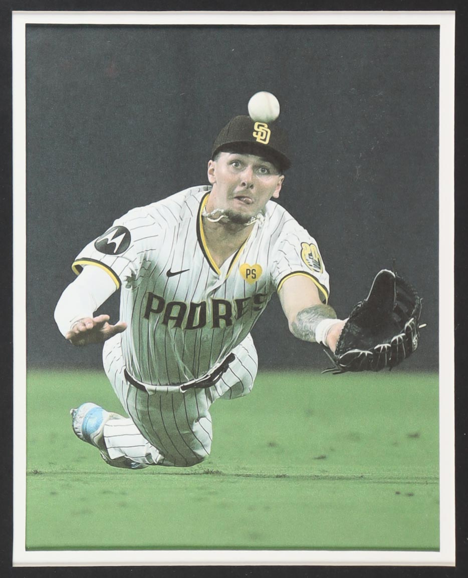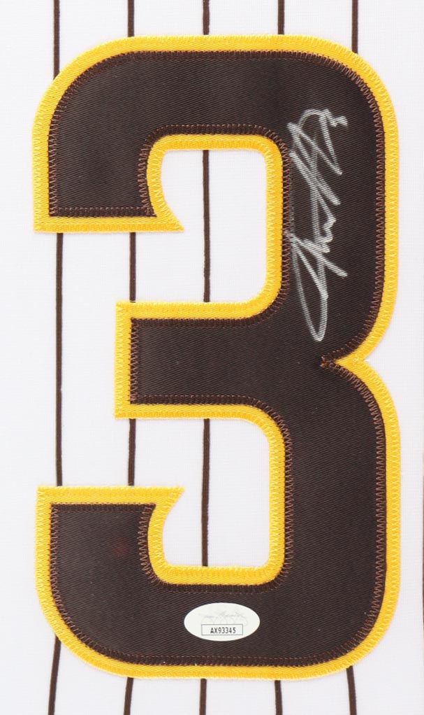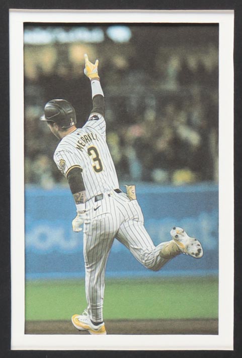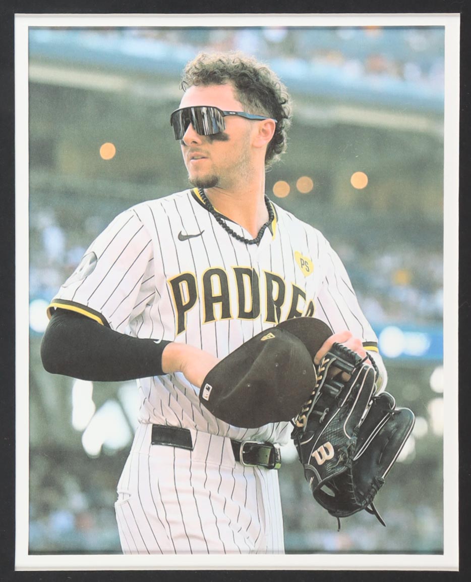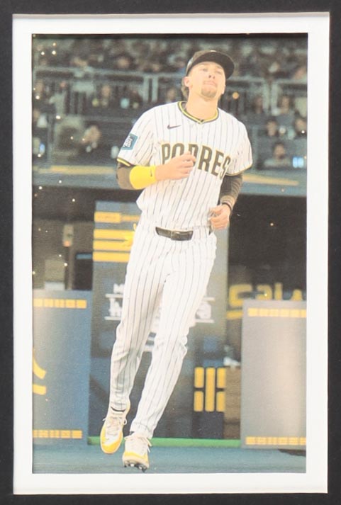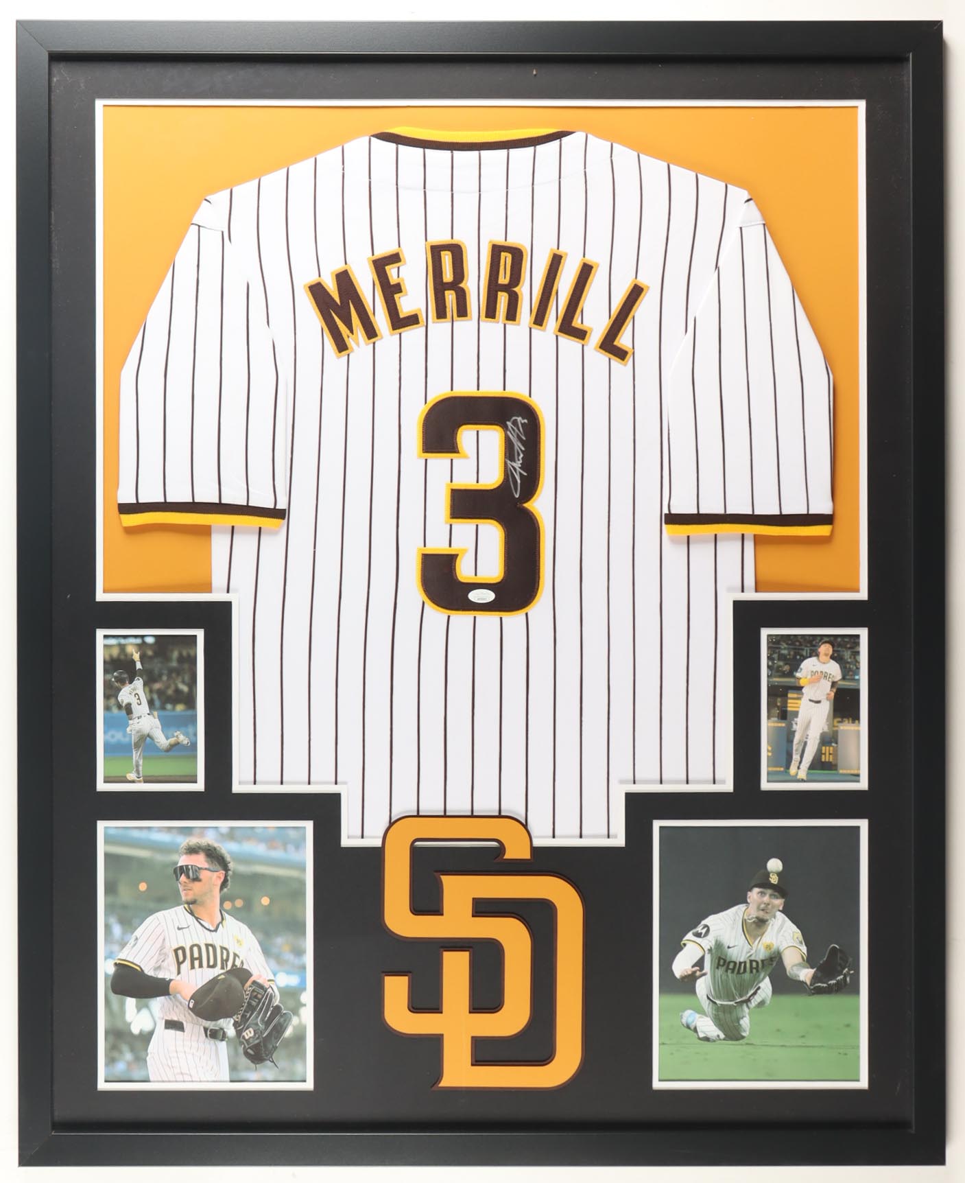 Custom frame measures 34" x 42" in size. Jersey has been hand-signed by Jackson Merrill (San Diego Padres). Display also includes (4) unsigned photographs and a team logo patch.